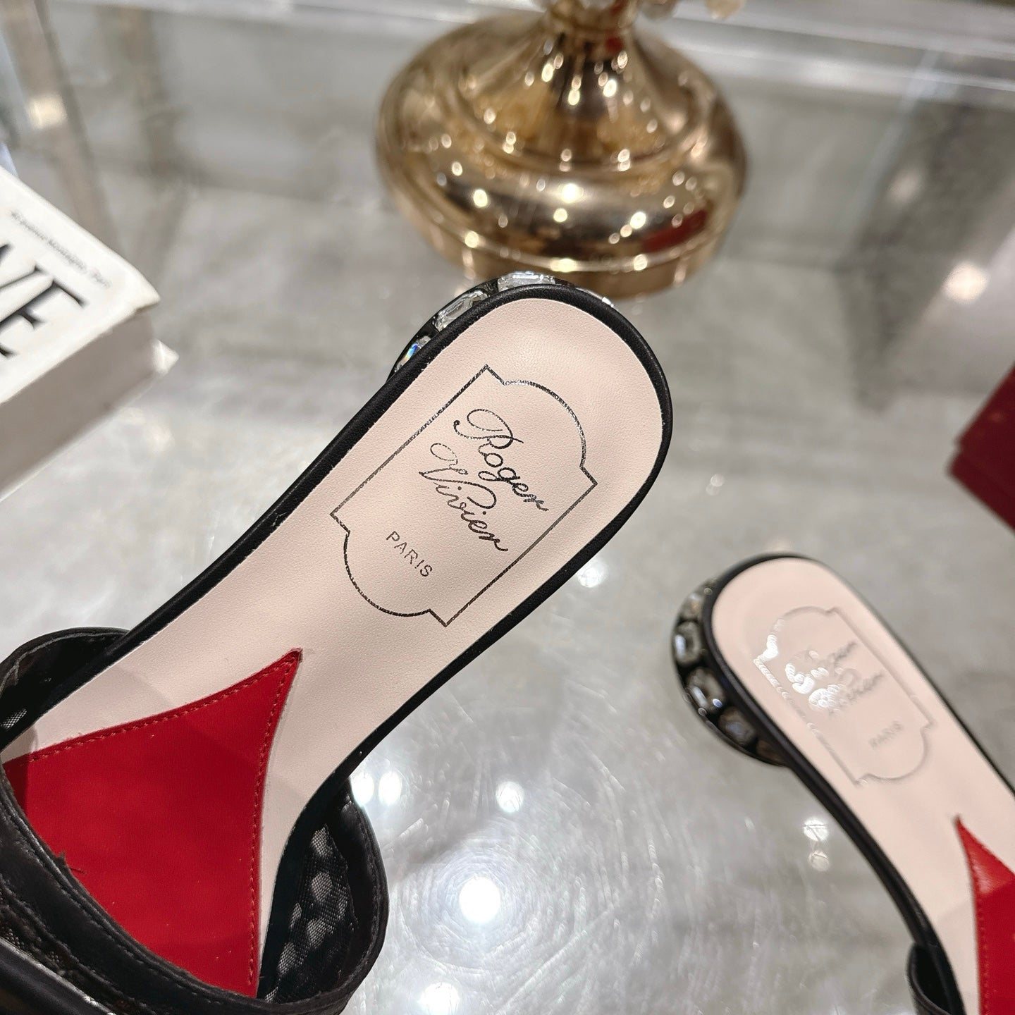 Viv 25 Hollow Square Buckle Slippers Black Weaving Leather 262999