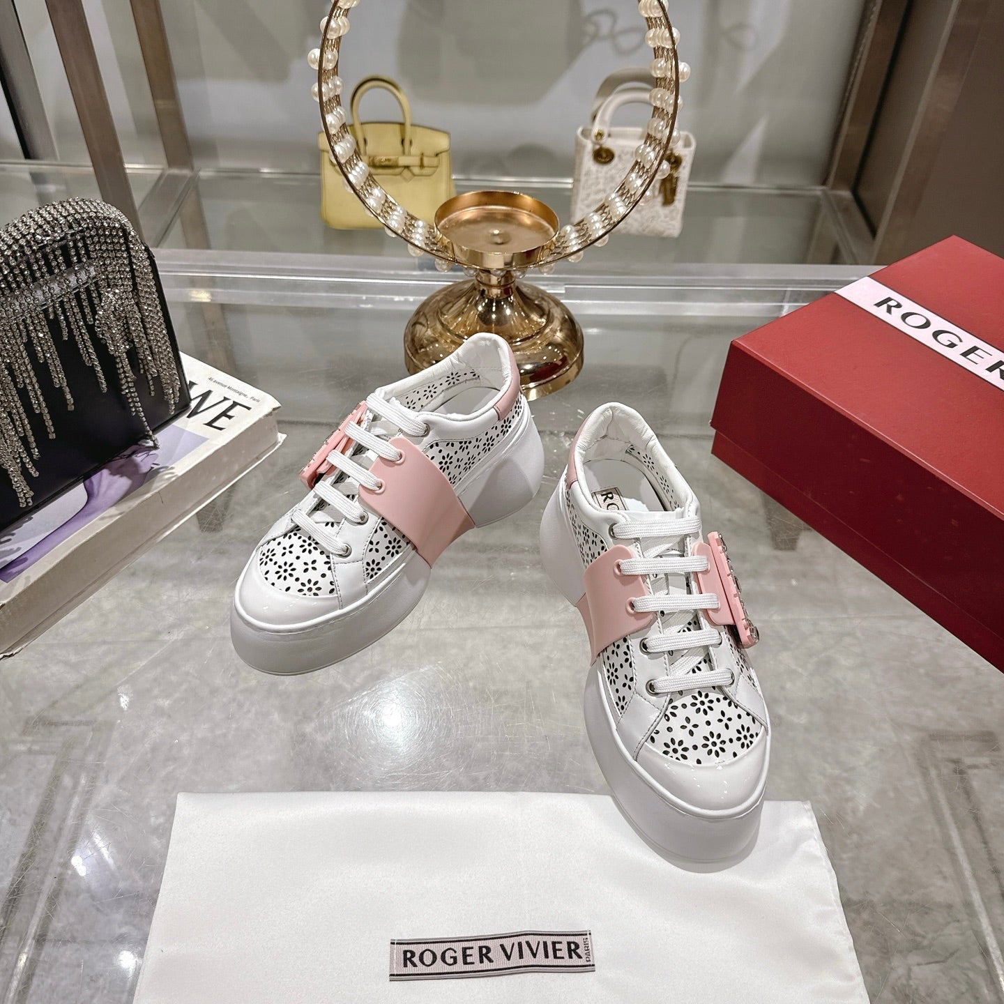 Viv 25 Square Buckle Platform White Pink Cowhide 262980