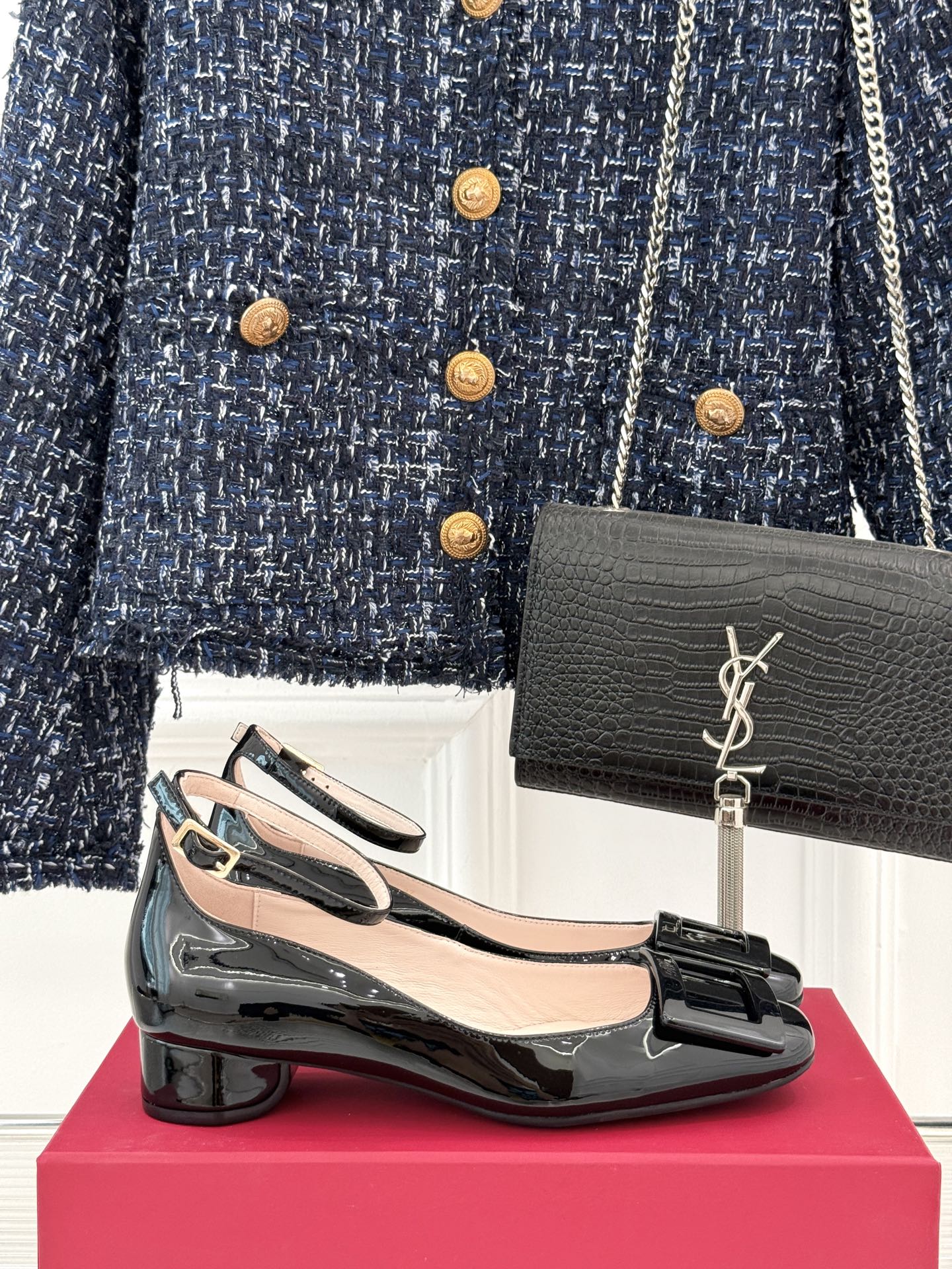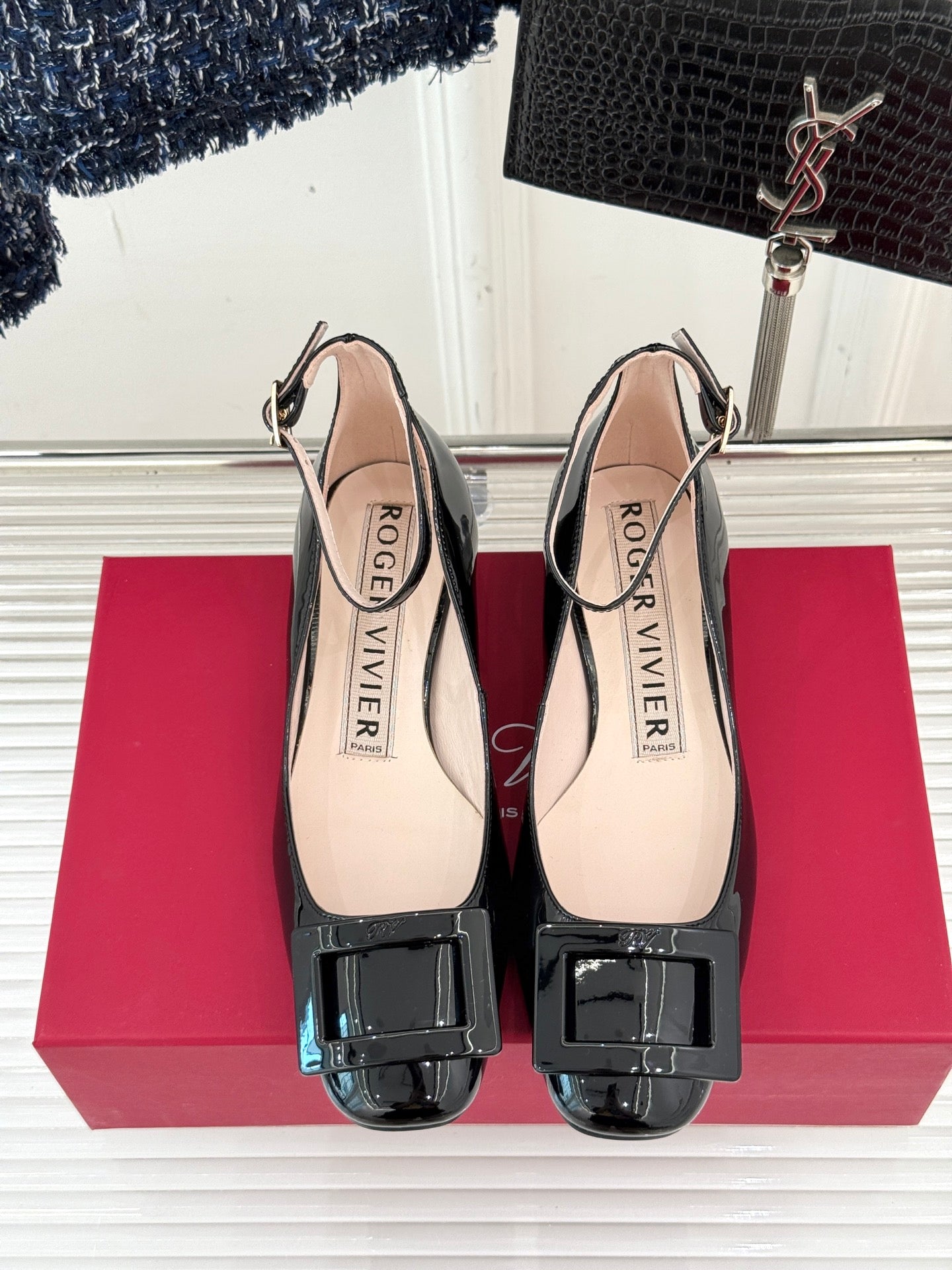 Viv Square Buckle Mary Jane Milky Black Fetal Cowhide 286709