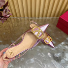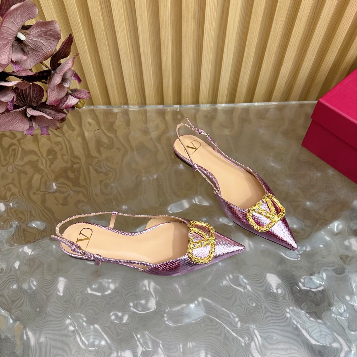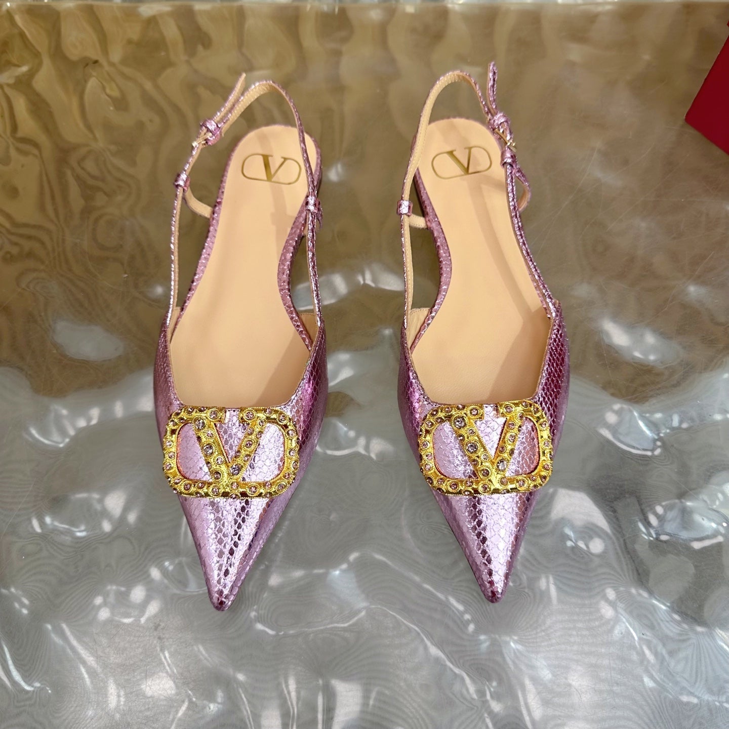VT Slingback Flat Pink Snake-grain Leather 331936