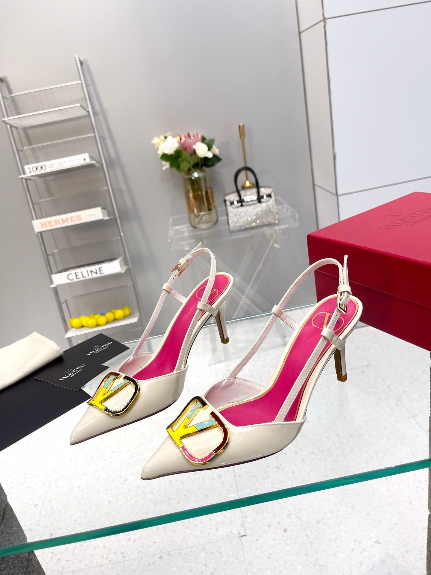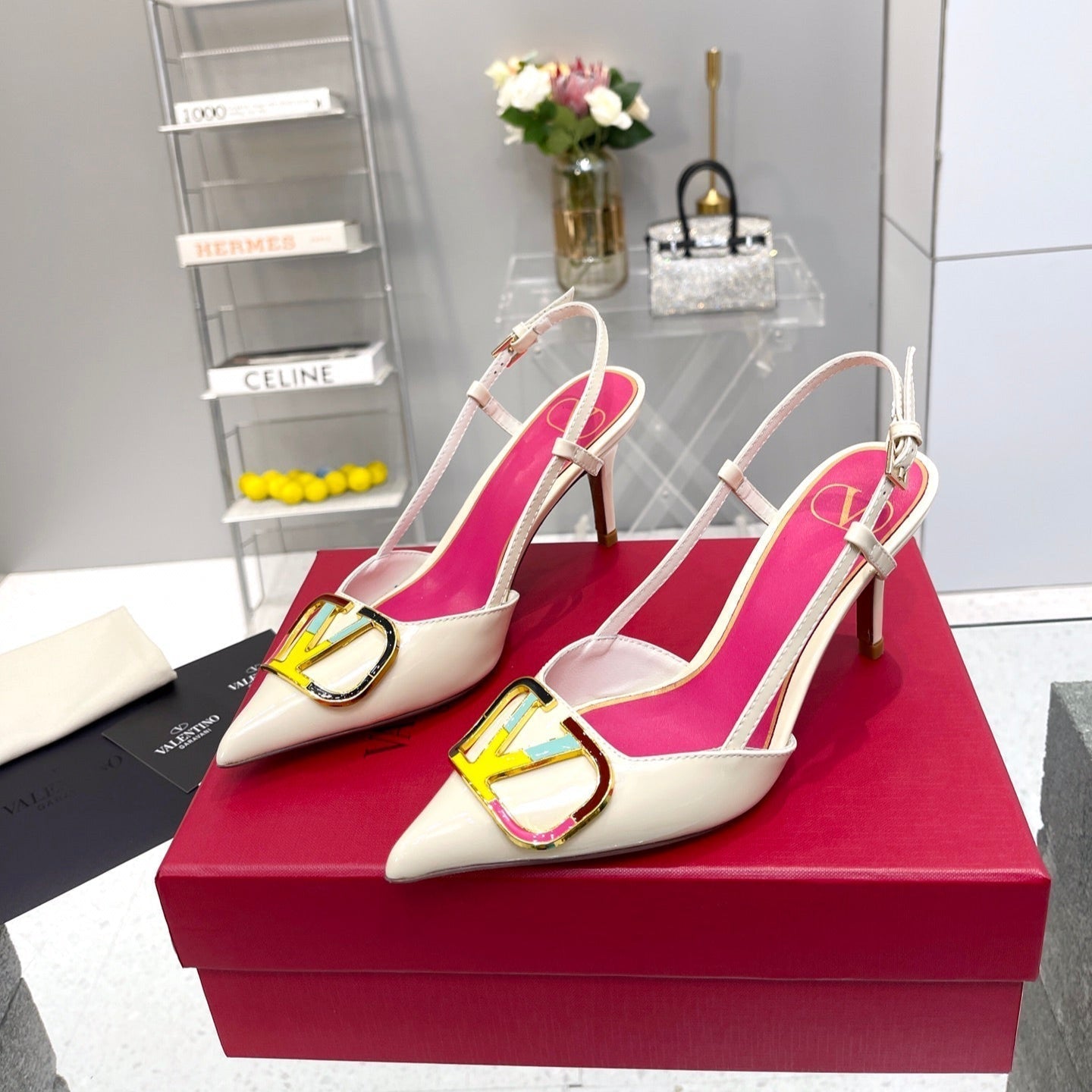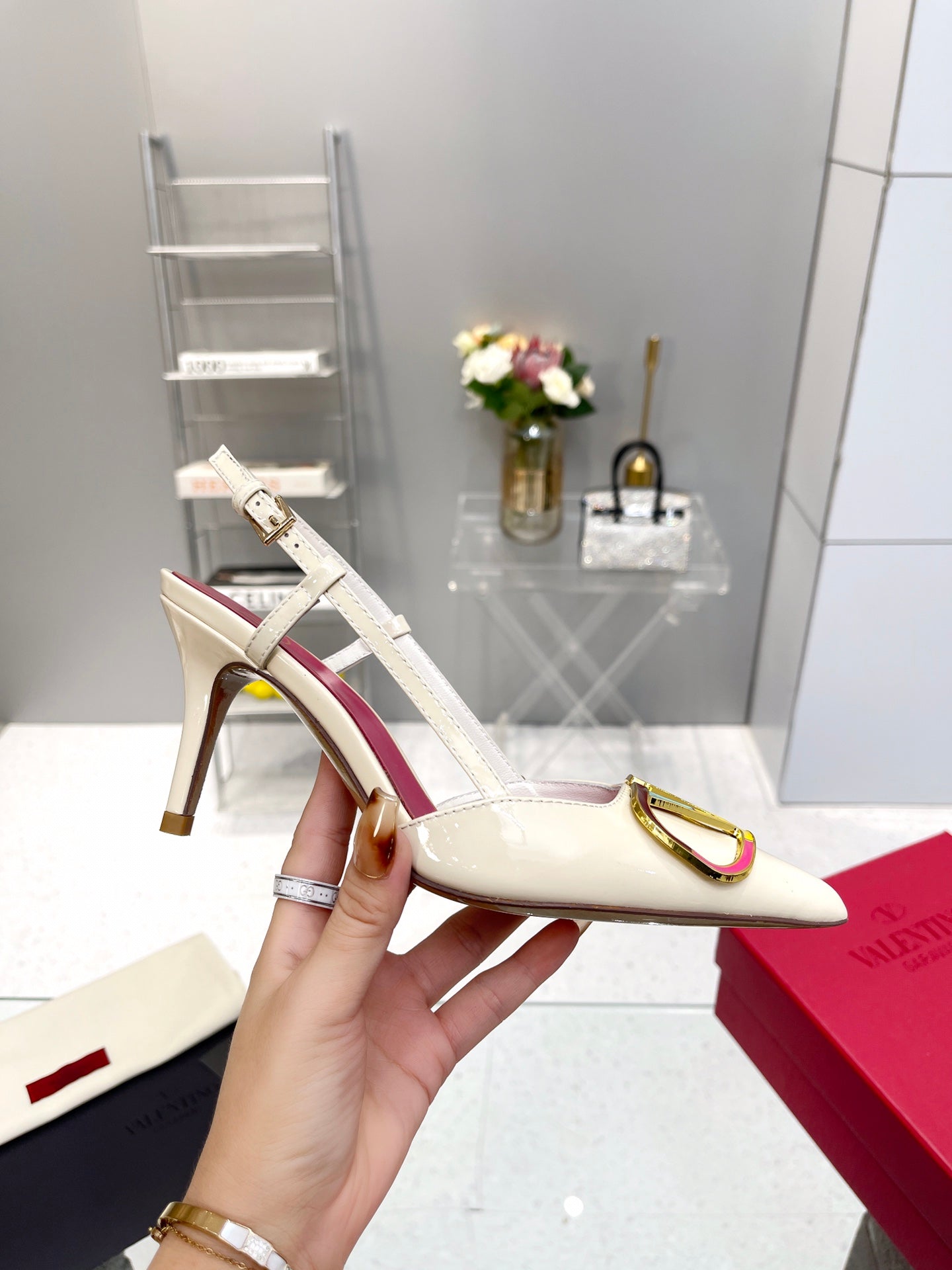 VT Vlogo Signature 75mm White Slingback Patent Leather