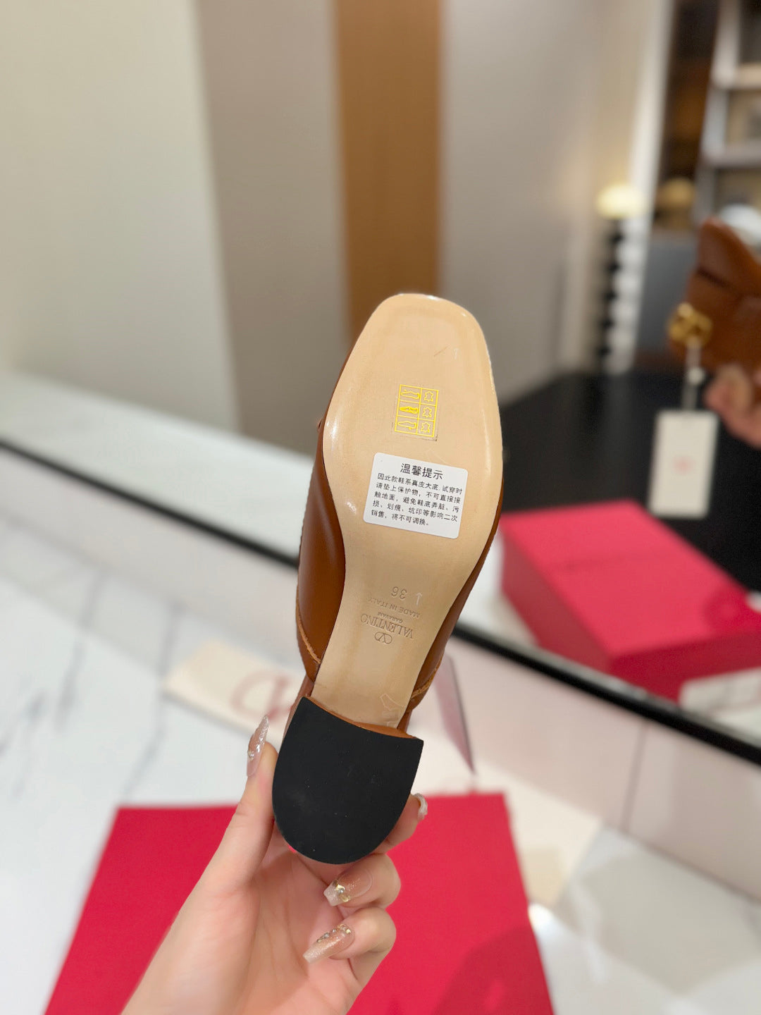 VT 2025 Signature Heeled Mule Brown Calf Leather 295076
