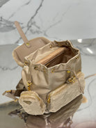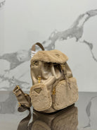 BACKPACK 25 IN BEIGE PARACHUTE FABRIC AND RABBIT FUR