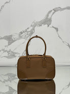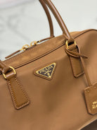 MEDIUM TOP HANDLE BAG 30 IN CHERRY WOOD NYLON AND CALFSKIN TRIM