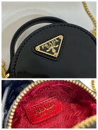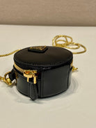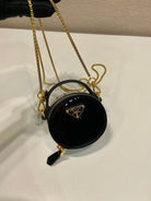 MINI ROUND BAG 8 IN BLACK GLOSSY CALFSKIN GOLD HARDWARE