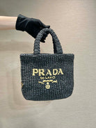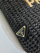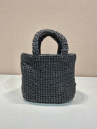 SMALL CROCHET TOTE BAG 24 IN BLACK MIX YELLOW RAFFIA