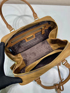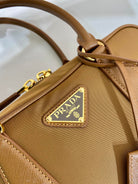 SMALL TOP HANDLE BAG 25 IN GOLDEN BROWN NYLON AND CALFSKIN TRIM