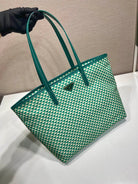TOTE BAG 33 IN FOREST GREEN MIX CREAM TRIANGLE PATTERN EMBROIDERED FABRIC