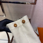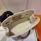 TOTE BAG 33 IN WHITE CANVAS AND BROWN CALFSKIN HANDLE