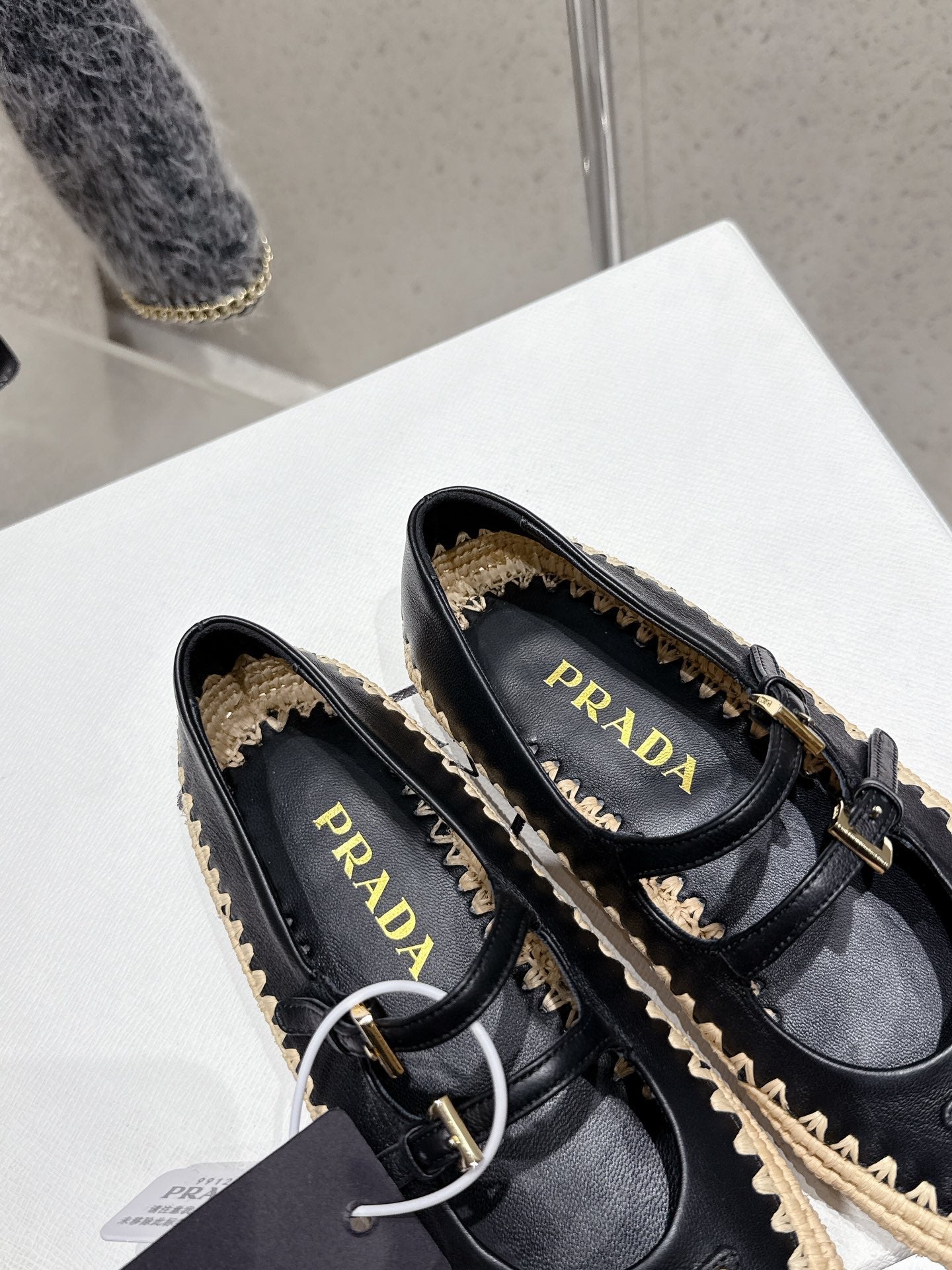 Pra 2025 Ballet Flat Black Beige Cowhide Woven 554289
