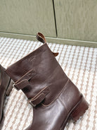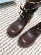 Pra 2025 Boot With Two Silver Buckle Dark Brown Calfskin 556291
