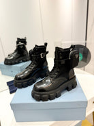 PRA MONOLITH BRUSHED AND RE-NYLON BOOTS WITH POUCH BLACK CALFSKIN