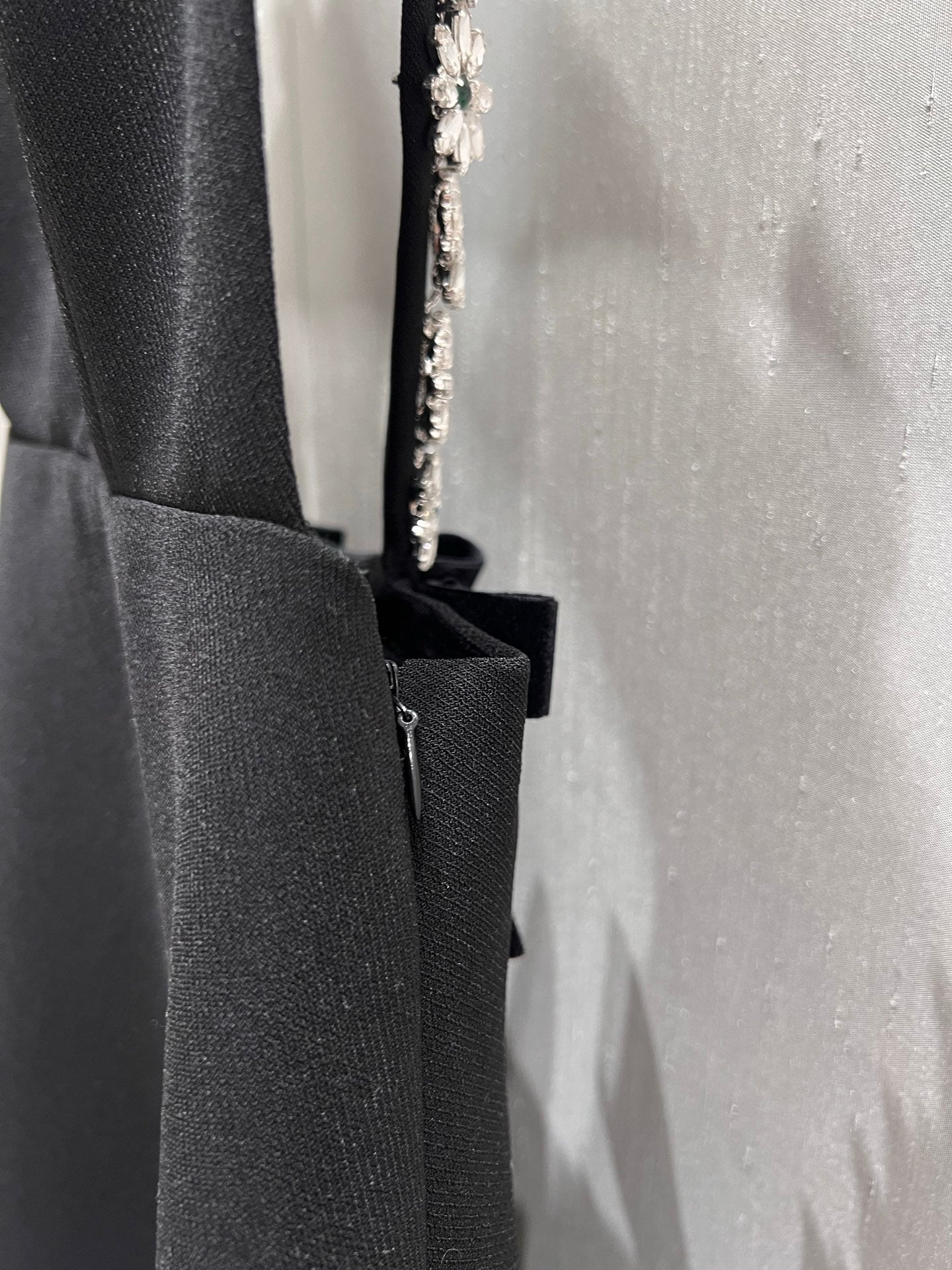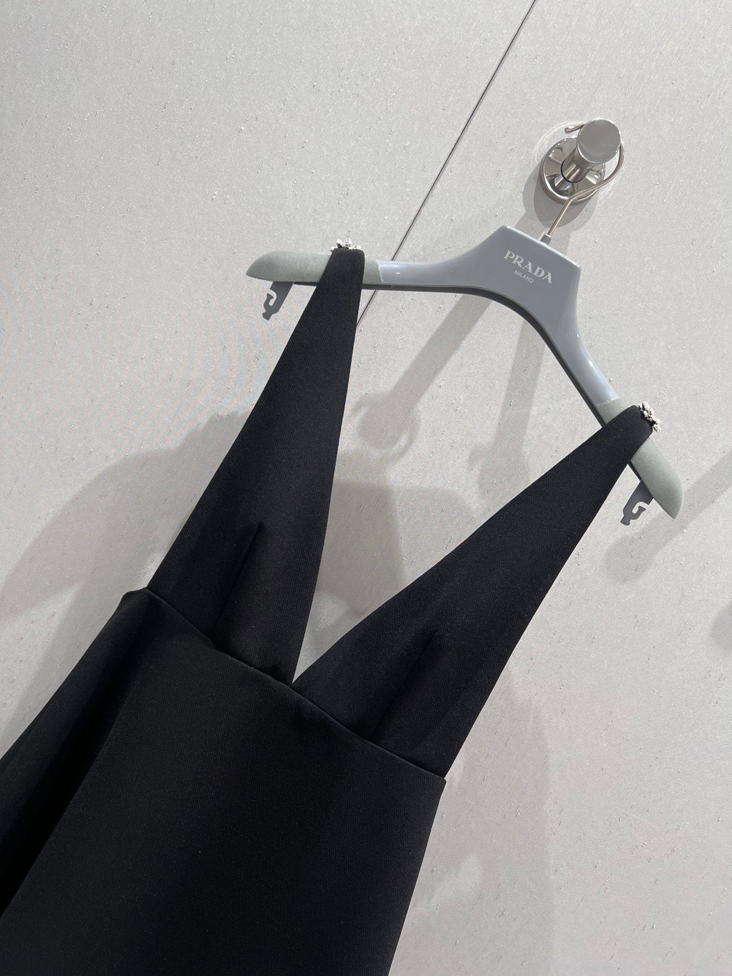 Prada 25 Deep V Diamond Flower Suspender Dress Black Acetate Viscose 214029