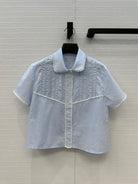 Prada 25 Lace Short-sleeved Shirt Blue Cotton