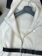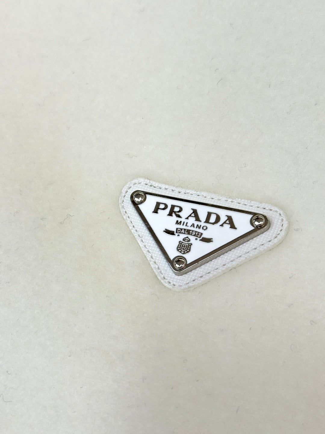 Prada 25 Mid-length Hooded Coat White Black Wool 637352