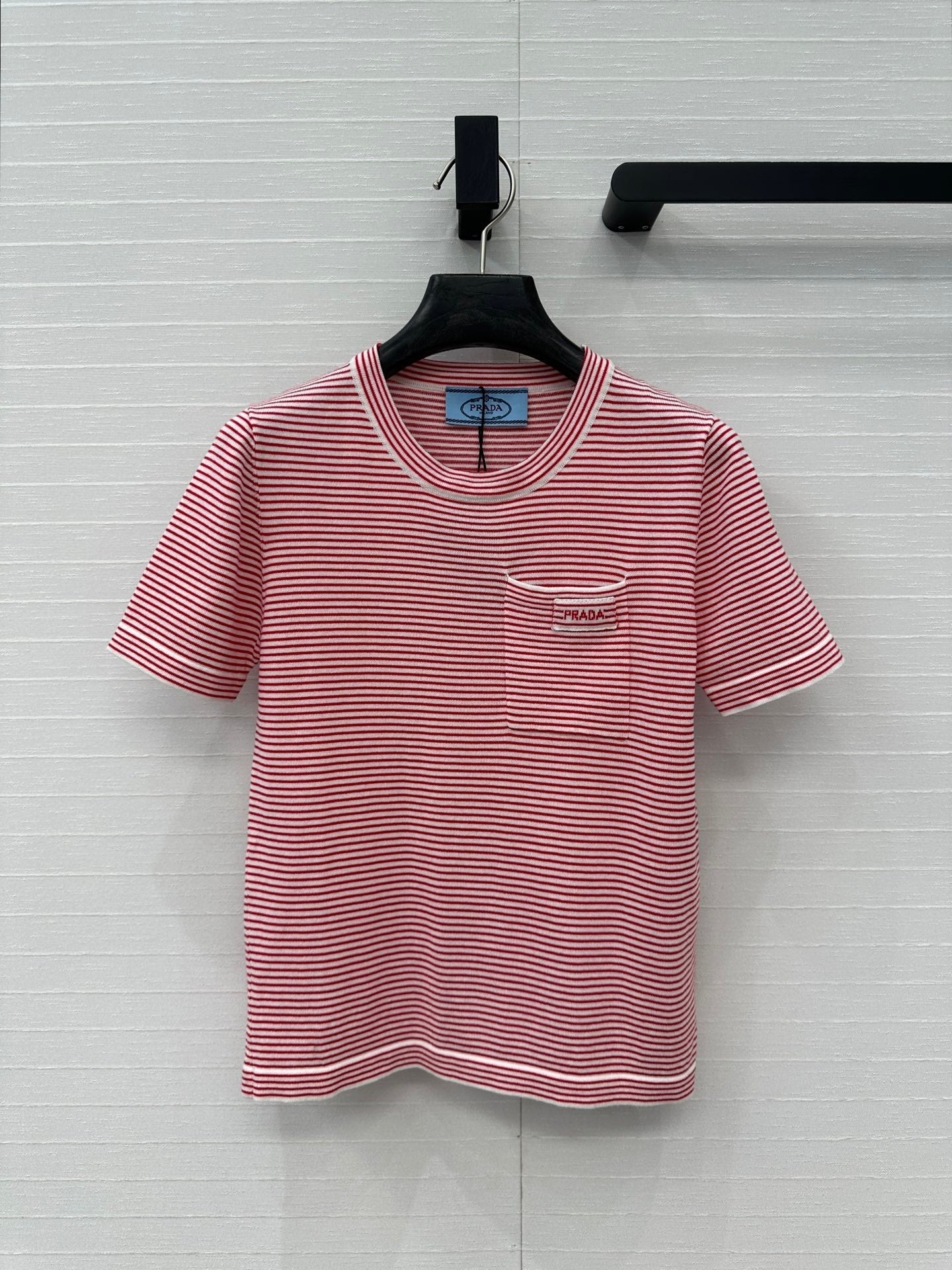 Prada 25 Striped Short-sleeved Knitted Top Red Cotton