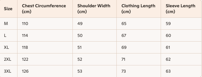 - Size : M ,L, XL, 2XL, 3XL