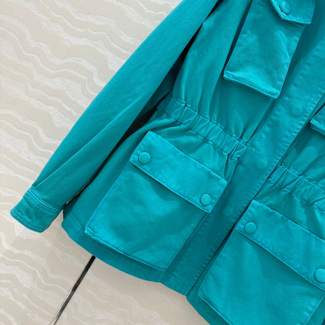 Prada 25 Hooded Short Jacket Blue-green Cotton