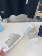 PRA STRAP SLIDES SANDALS WHITE AND LIGHT GRAY SUEDE