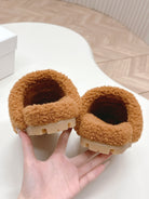 MULES ATTACHED TRIANGLE LOGO IN BRONZE BROWN SHEARLING