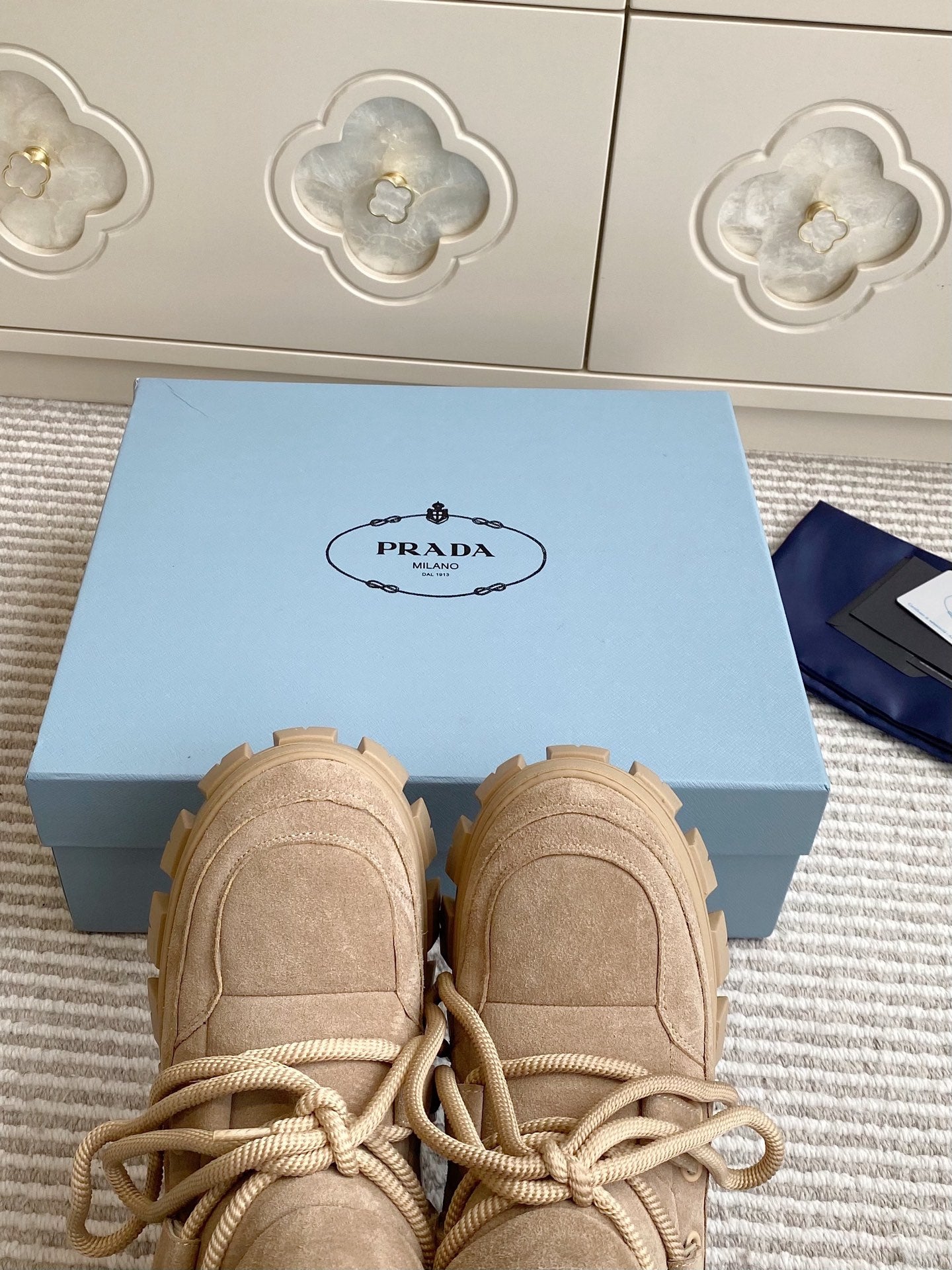 Prada 25 Shearling Apres-ski Boots Beige Suede Calfskin