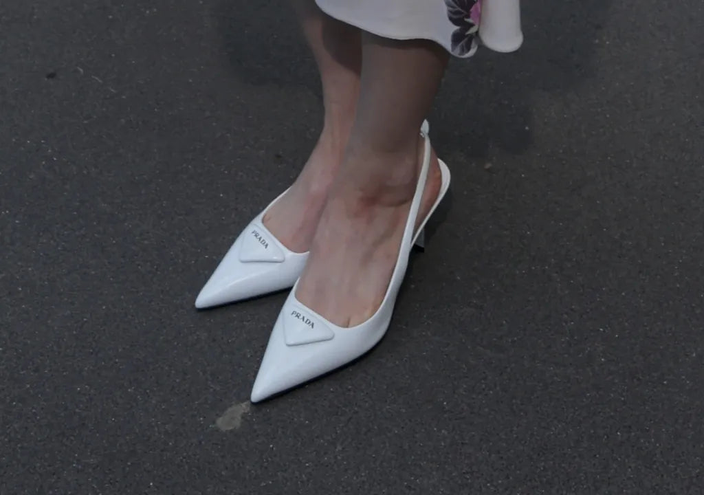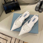 TRIANGLE LOGO SLINGBACK PUMPS IN WHITE GLOSSY CALFSKIN