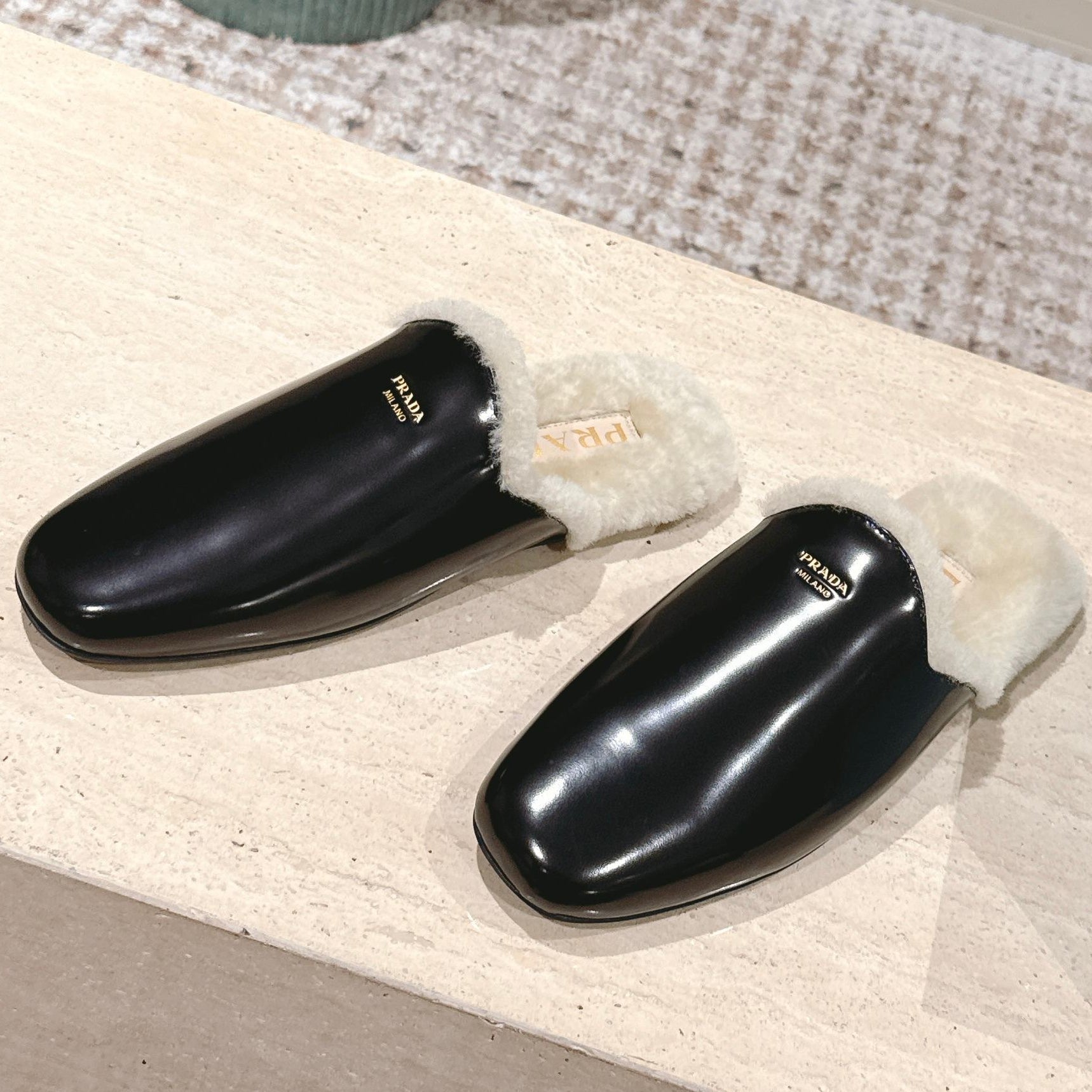 Pra 2025 Fur-lined Flat Black Suede Wool 557120