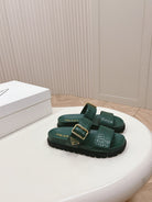 PRA CROCODILE MOTIF SLIDES SANDALS CASTLETON GREEN CALFSKIN