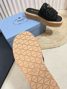 PRA WEDGE FLATFORM SLIDES BLACK RAFFIA