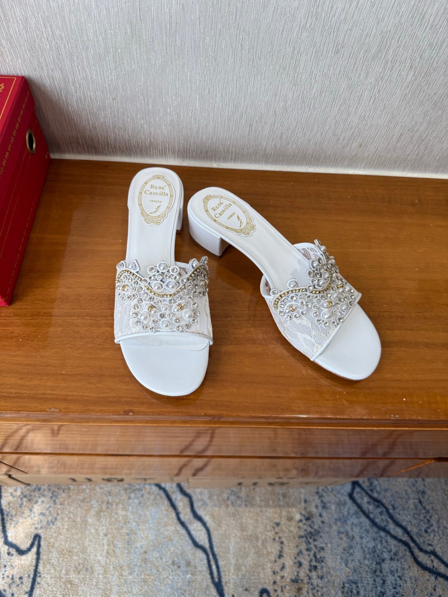 RC 25 Crystal Chandelier Sandals White Sheepskin 221963