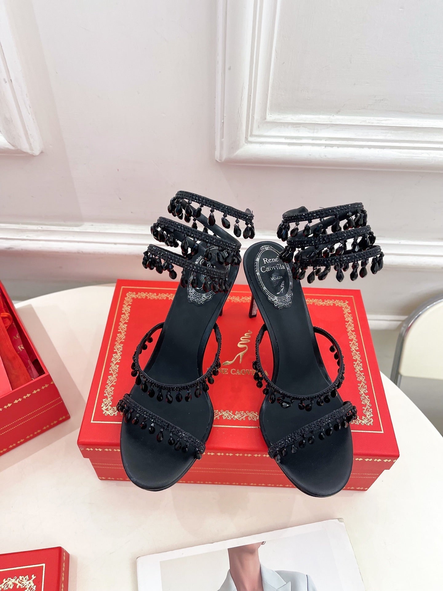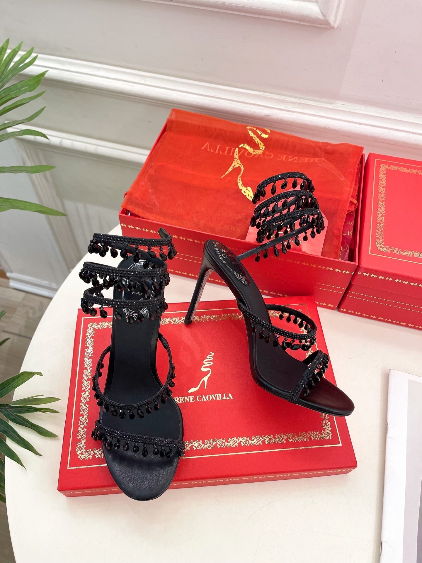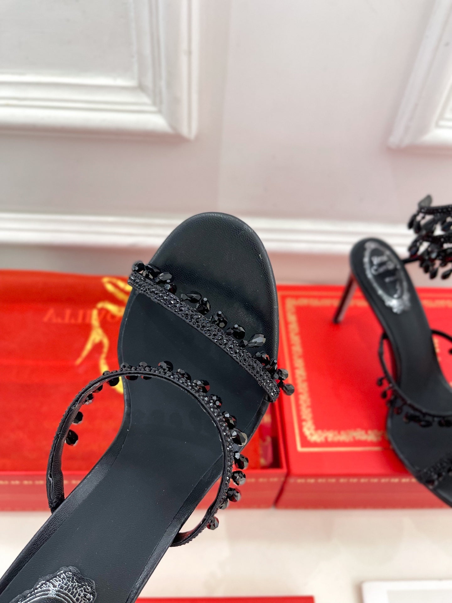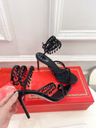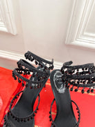 RC 25 Crystal Tassel High-Heeled Sandals Black Silk Crystal Diamond 253539