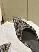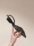 RC 25 Diamond Lace High Heeled Sandals Black Sheepskin 268055