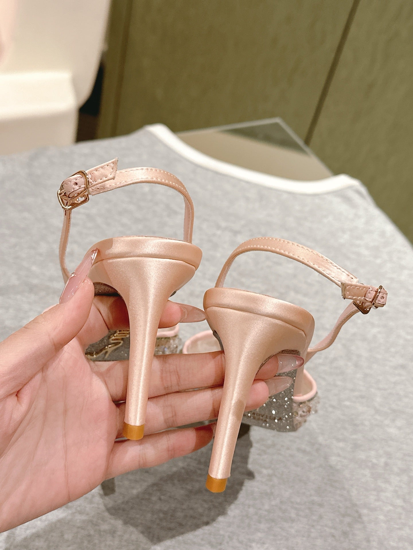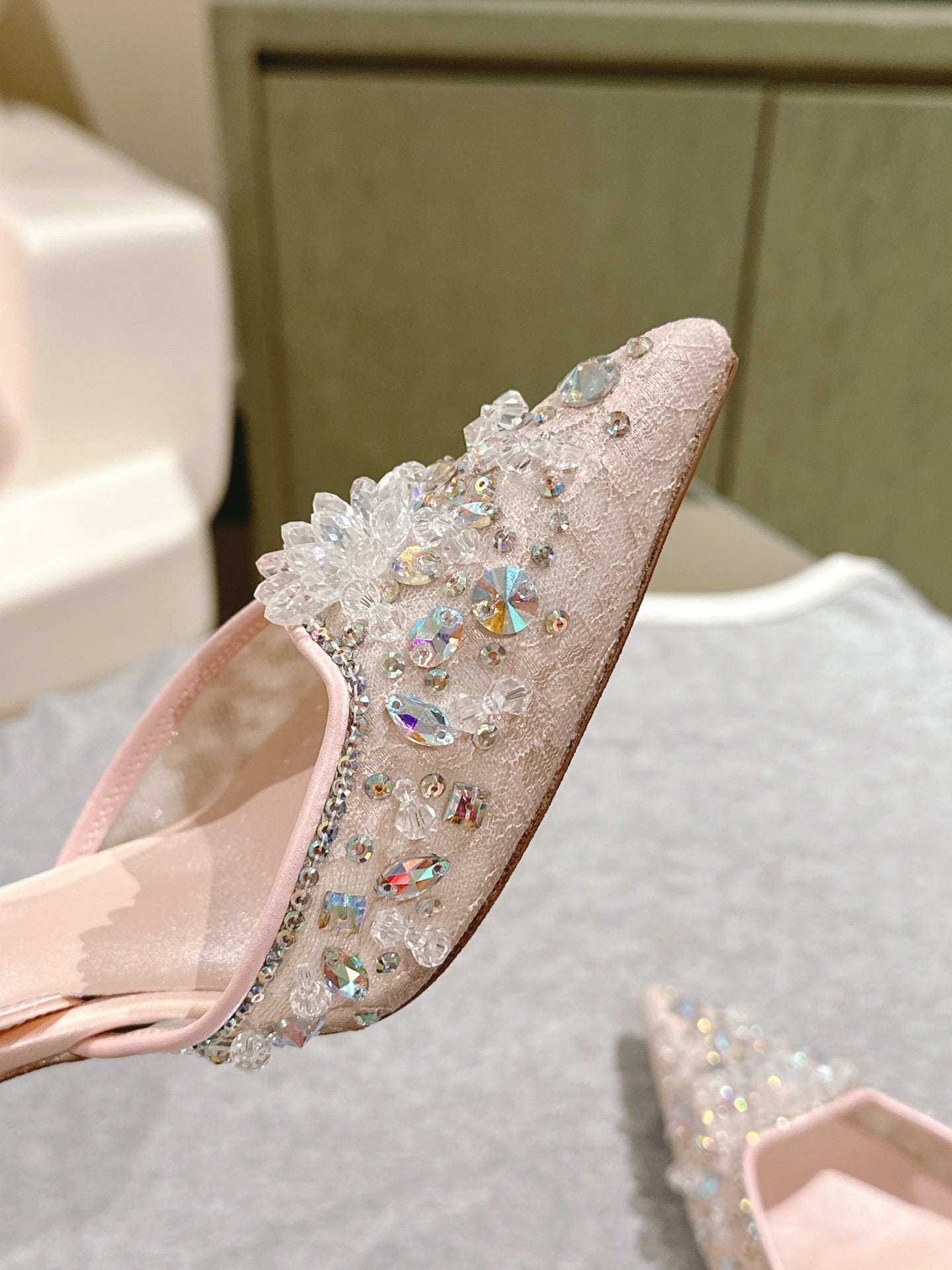 RC 25 Diamond Lace High Heeled Sandals Pink Nude Sheepskin 268056
