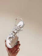 RC 25 Flat Sole Flower Thong White Silk Rhinestones 268063