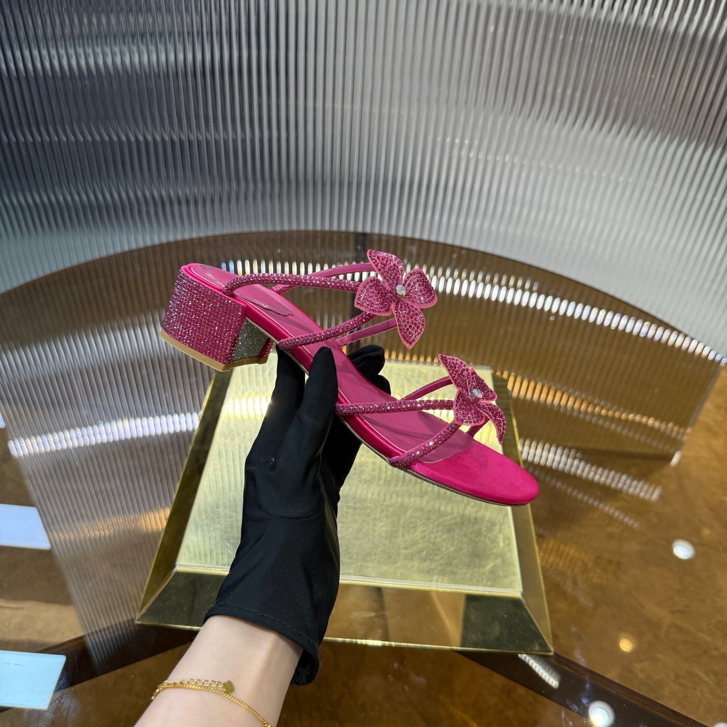 RC 25C Flower Sandals Pink Sheepskin Rhinestones 314822