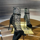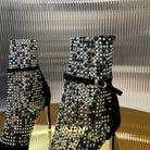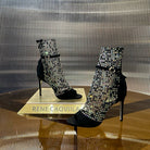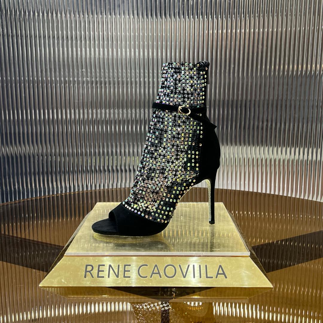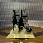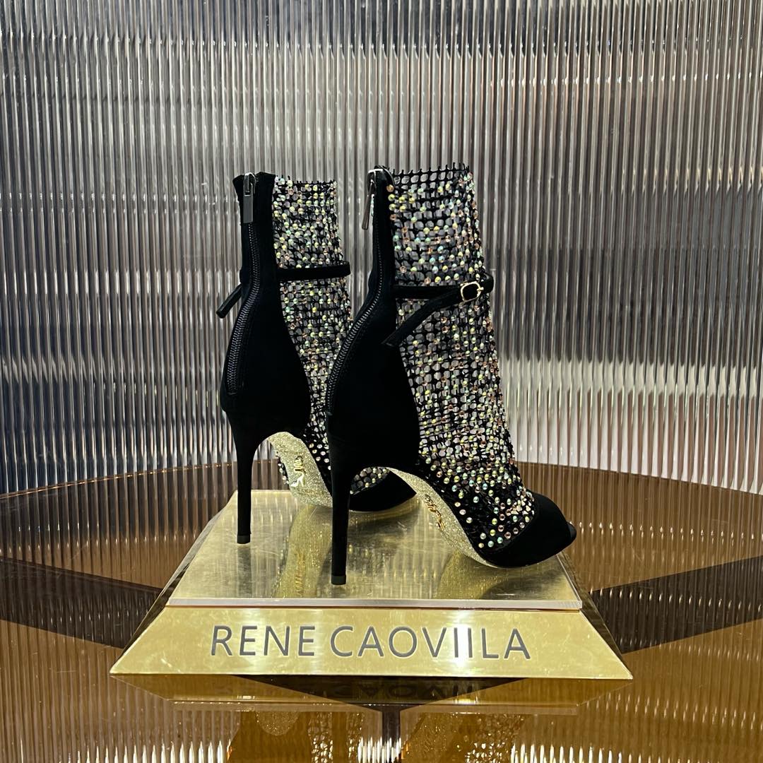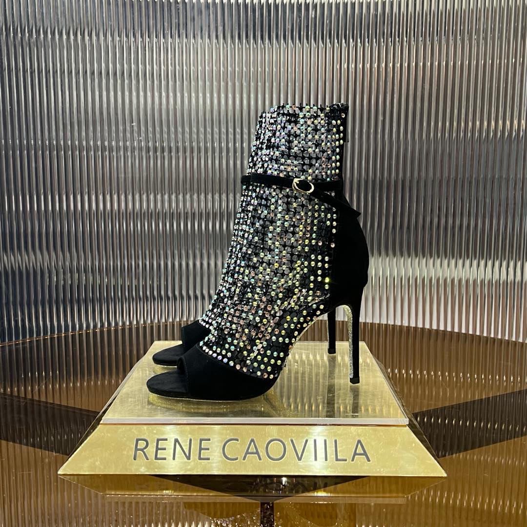 RC 25C High Heel Short Boots Mid-Tube Open-Toe Sandals Black Sheepskin 174961