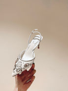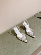 RC 25C Slingback Diamond High Heel 8cm White Silk Rhinestones 268078