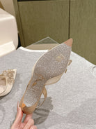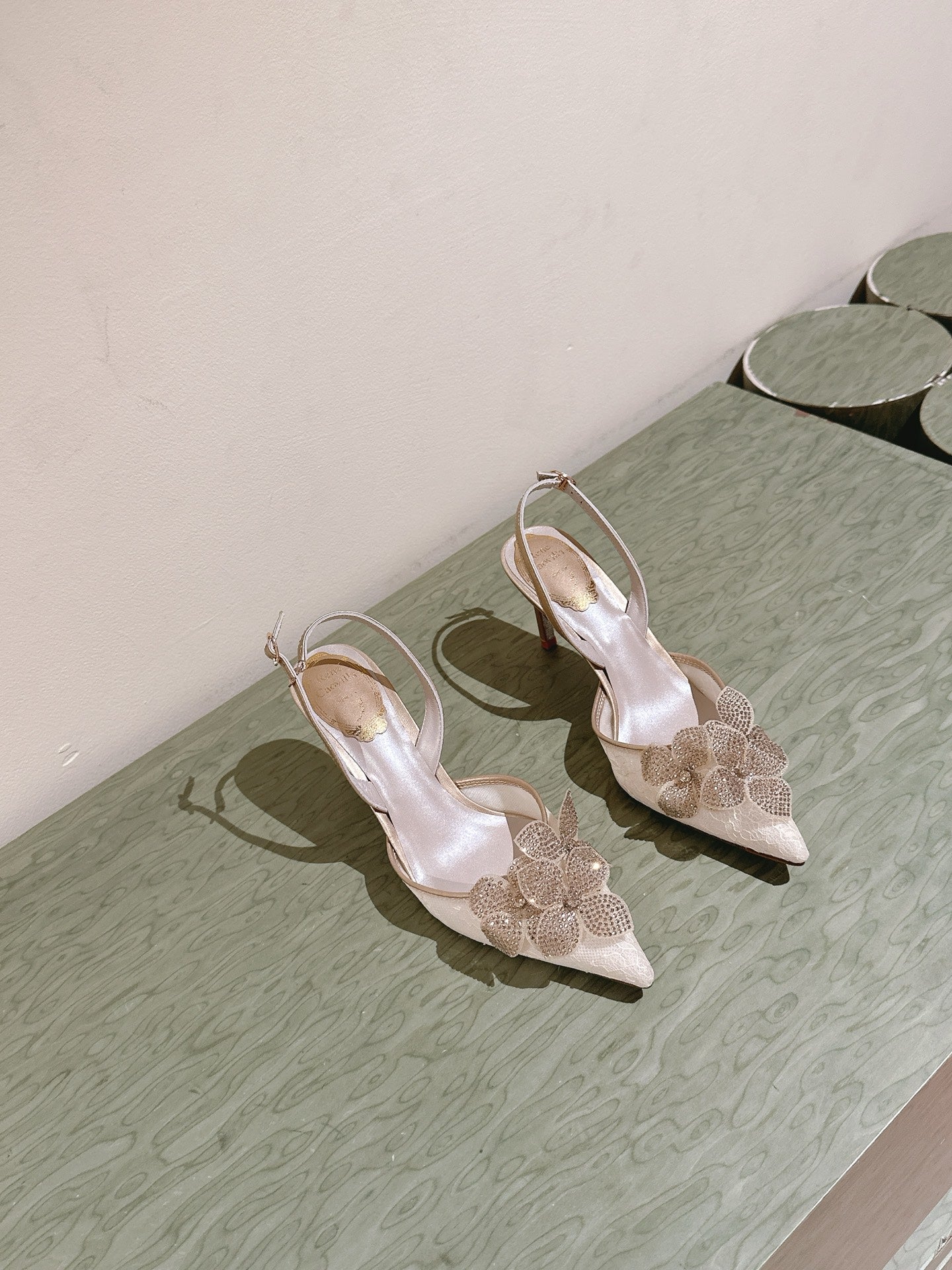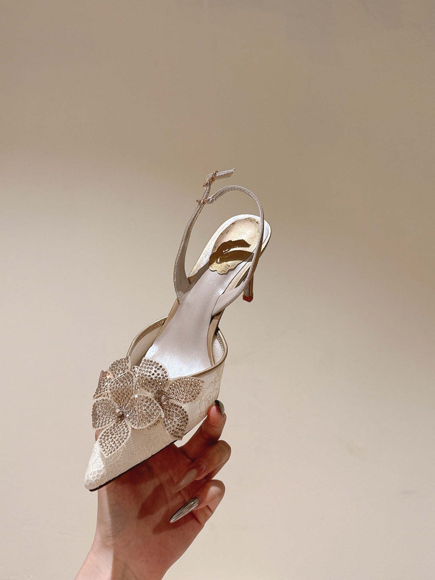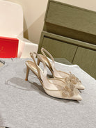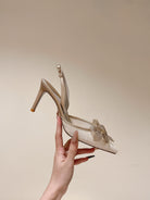 RC 25C Slingback Flower High Heel 7.5cm Beige Silk Rhinestones 268081
