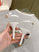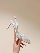 RC 25C Slingback Lace Mesh High Heel 7.5cm White Silk Rhinestones 268082