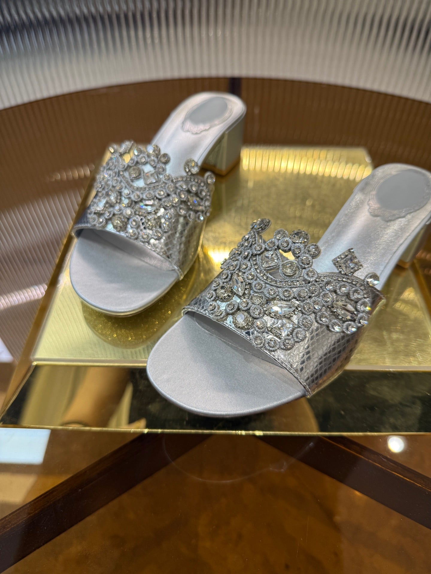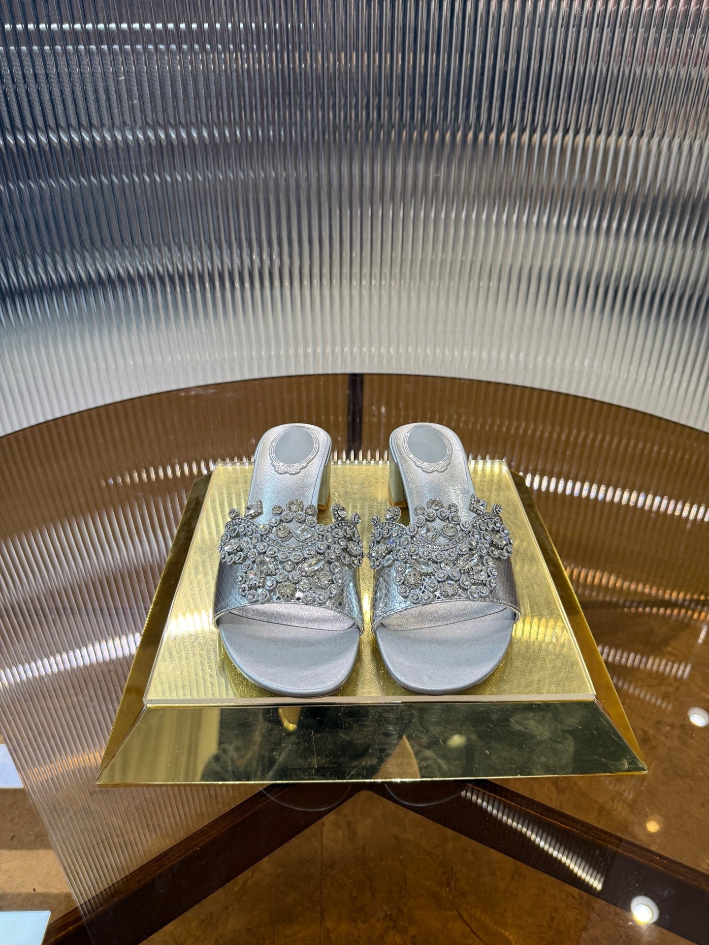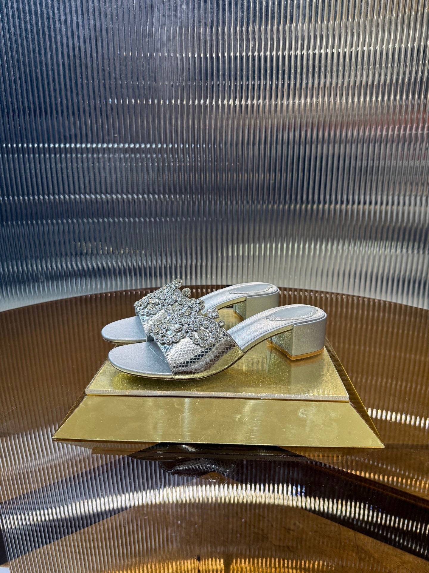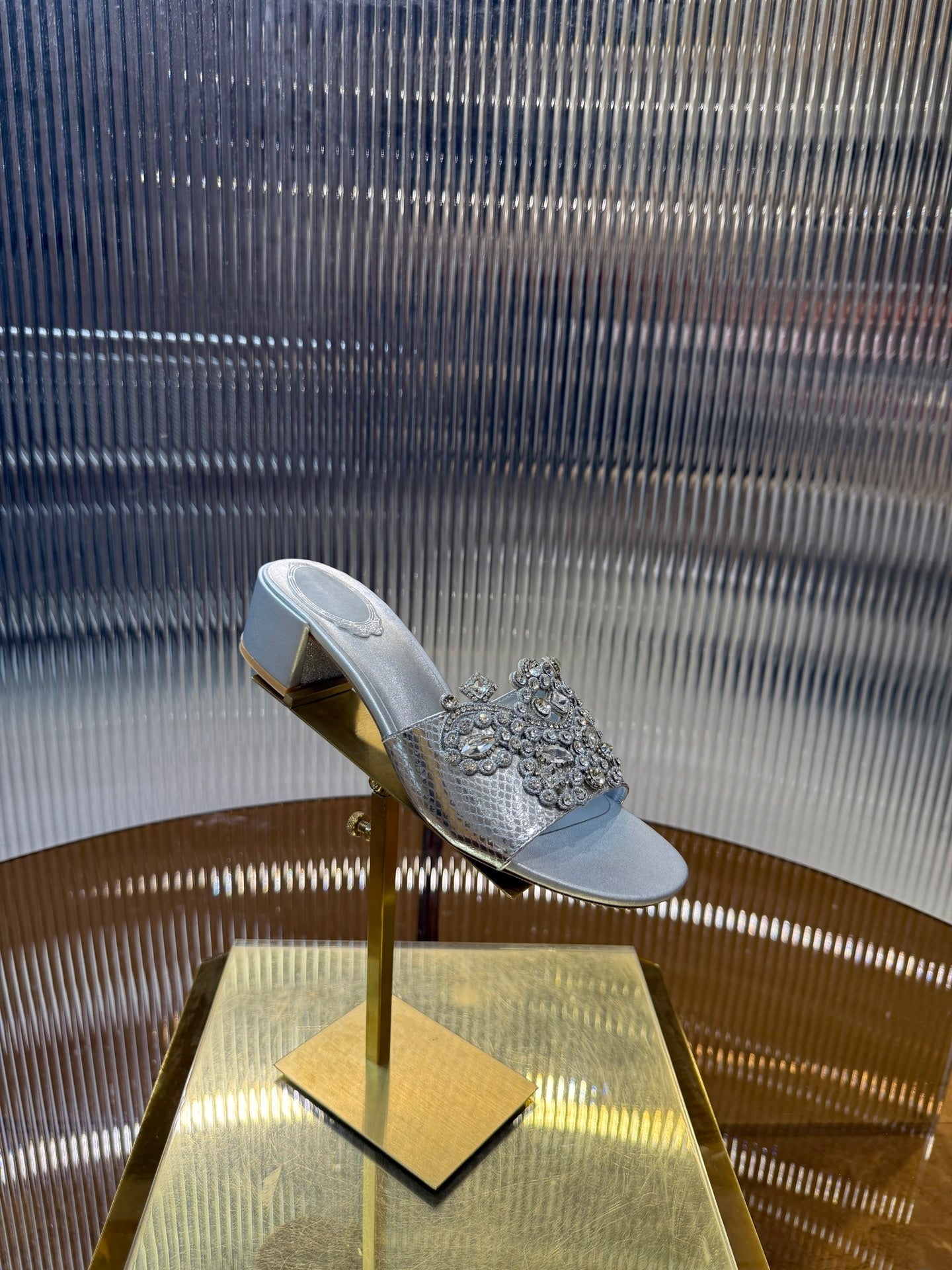 RC 25C Slippers 4.5cm Silver Sheepskin Rhinestones 310641