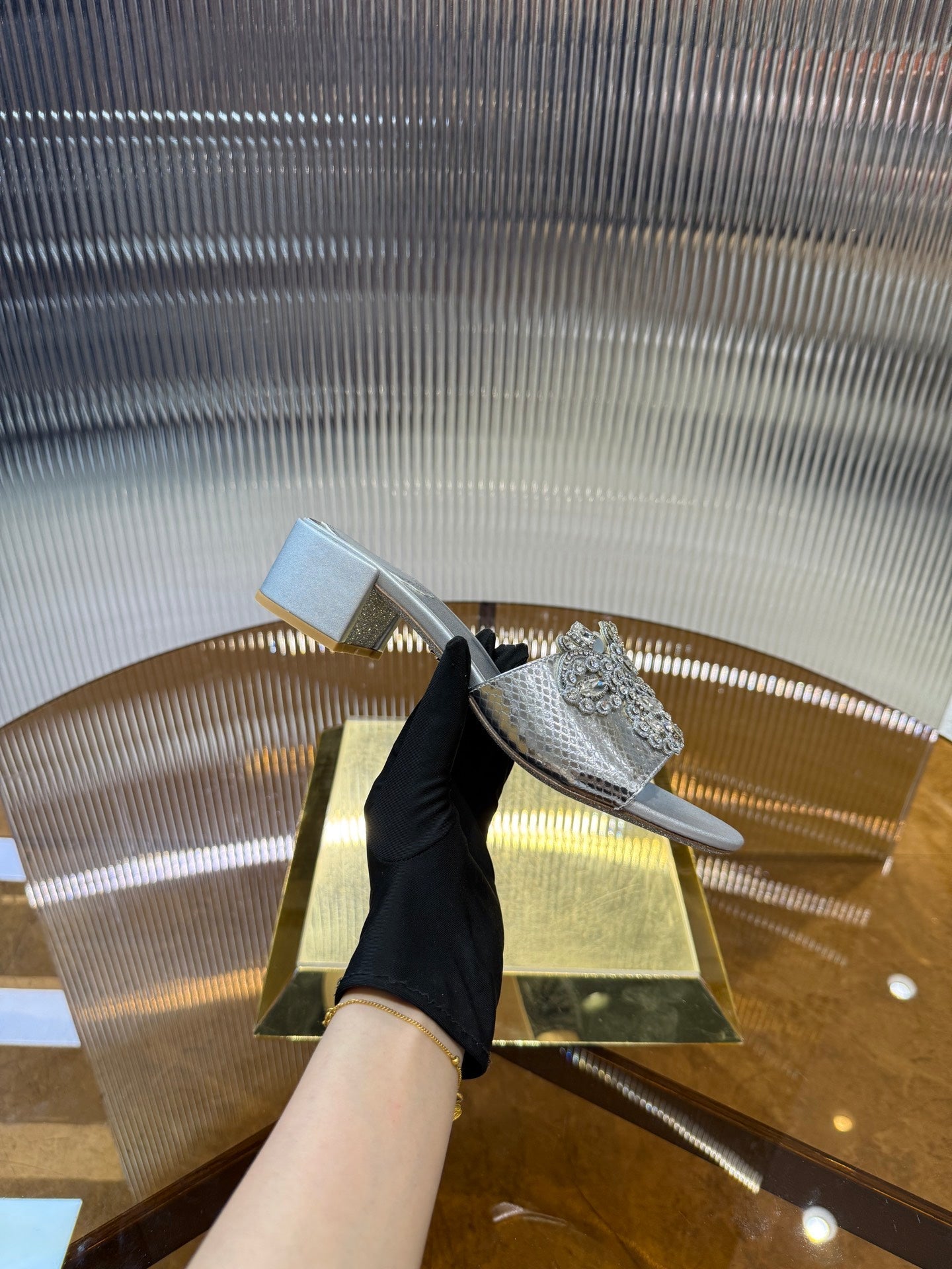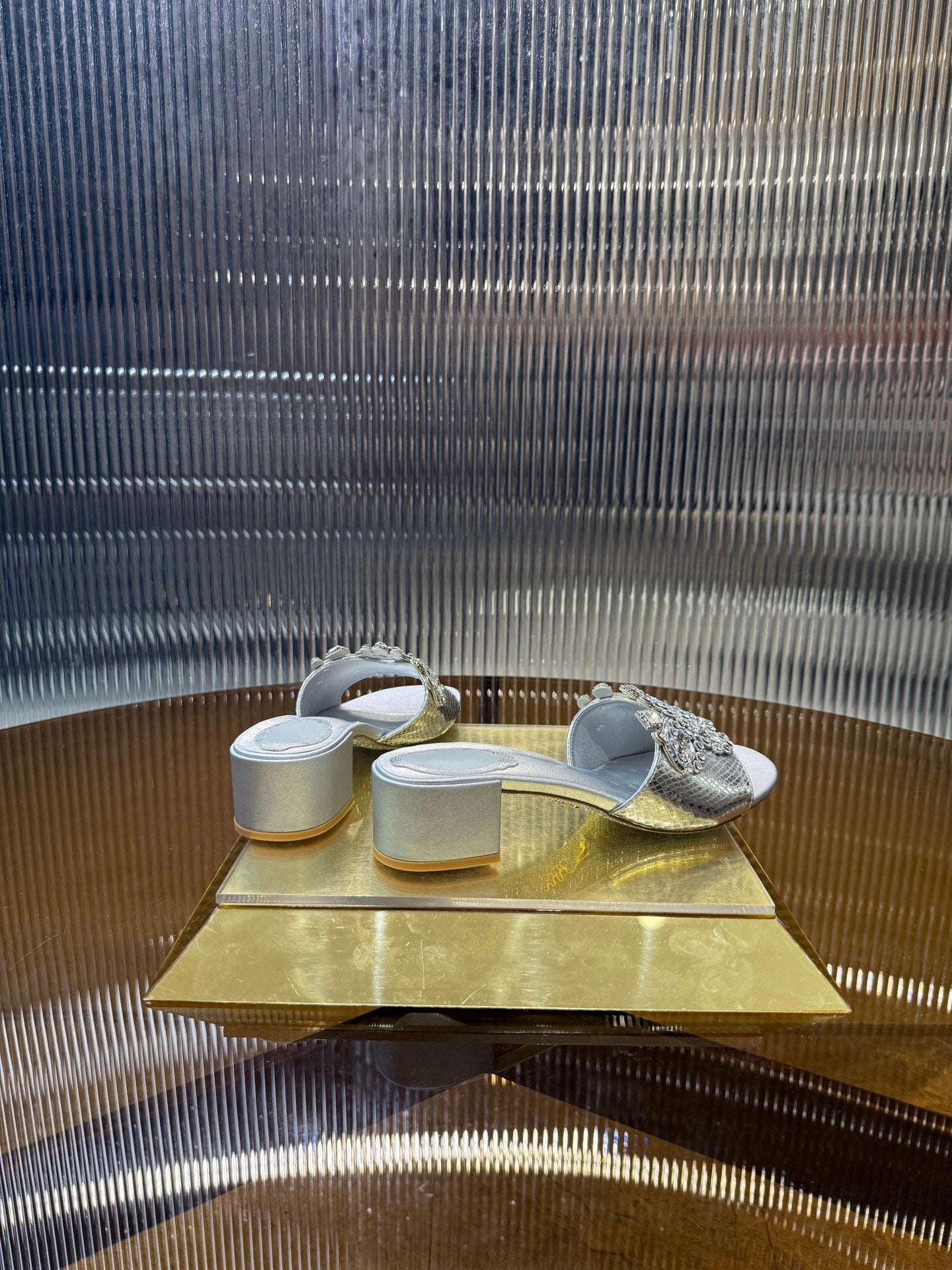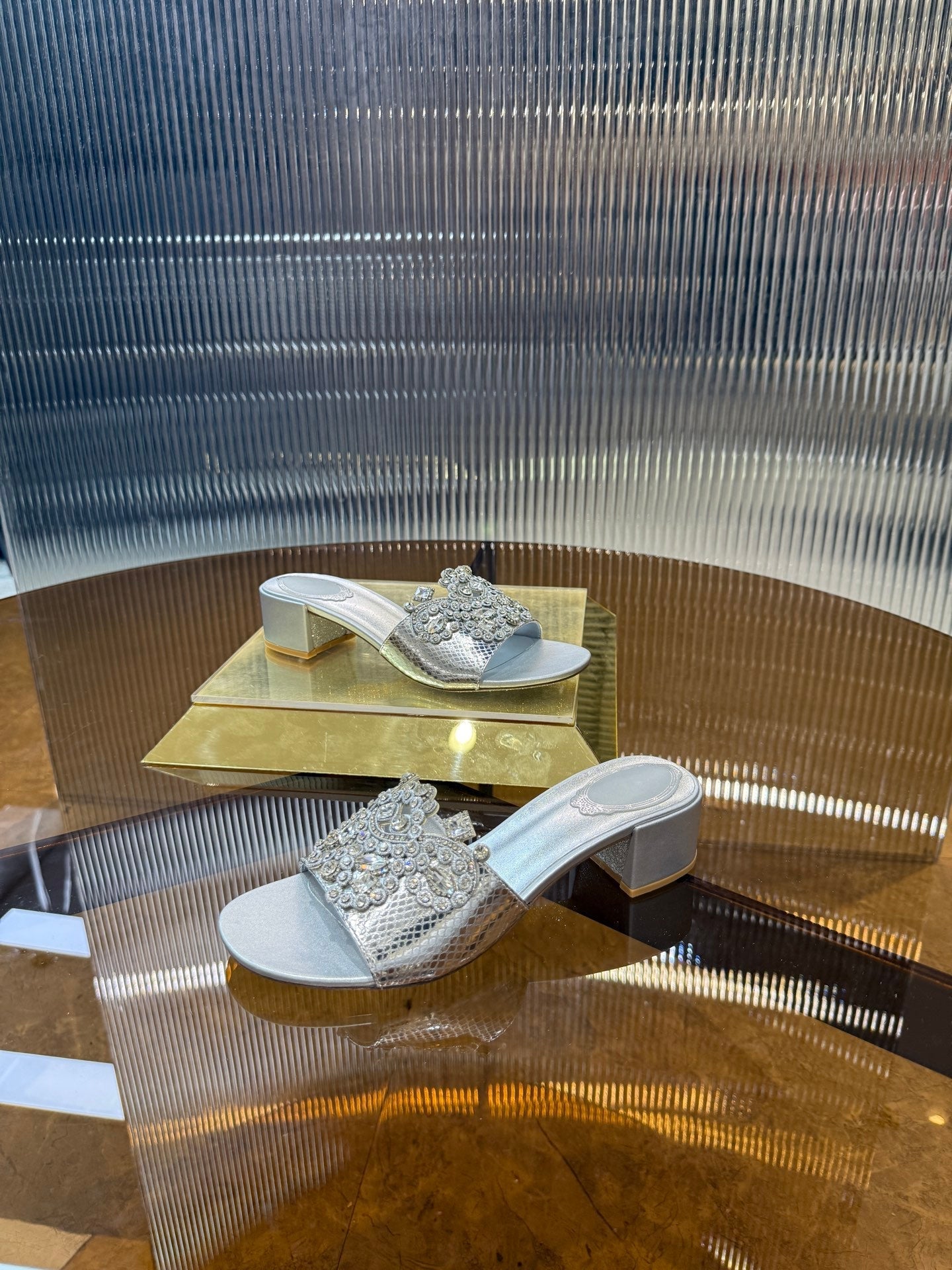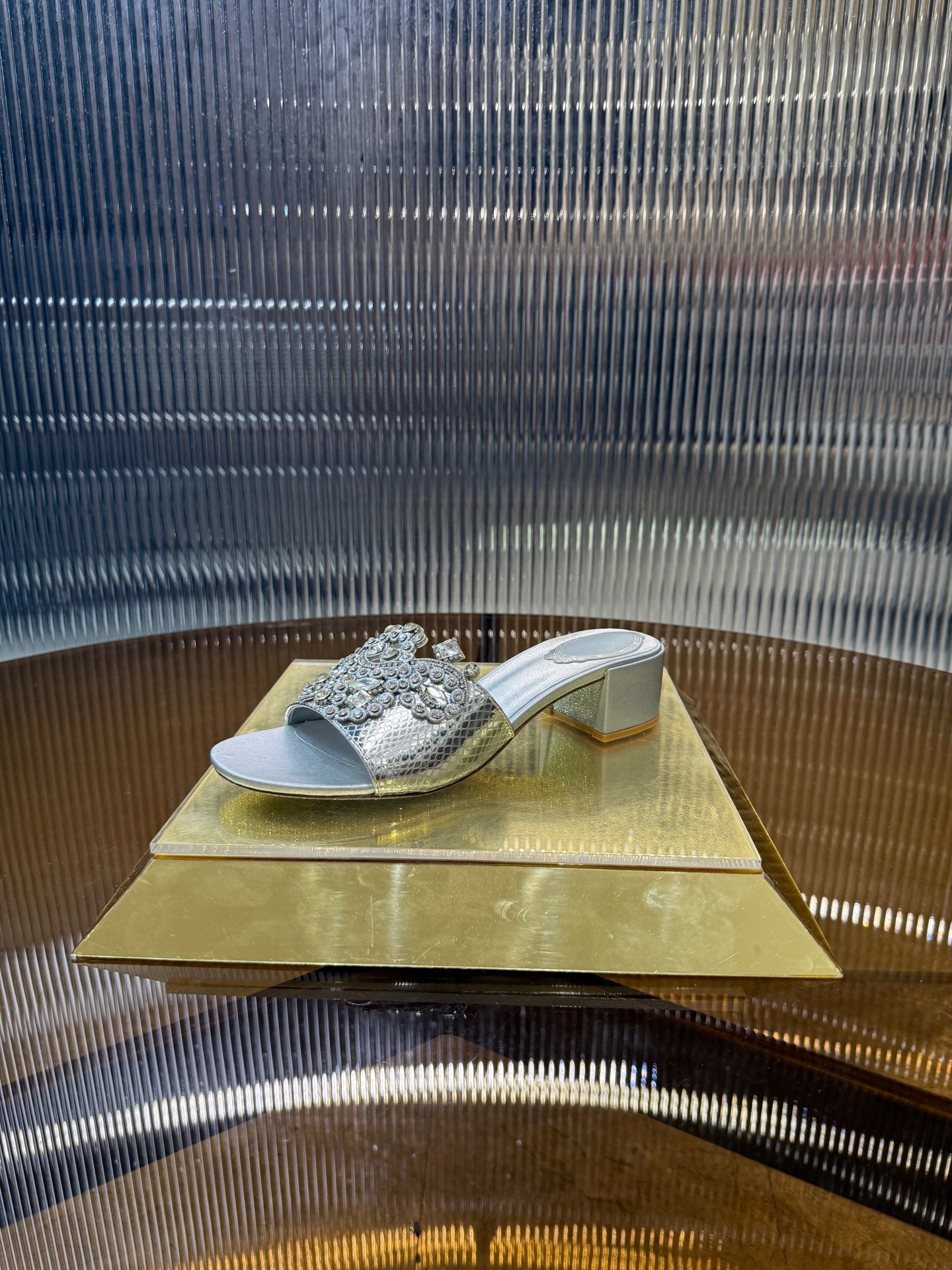 RC 25C Slippers 4.5cm Silver Sheepskin Rhinestones 310641