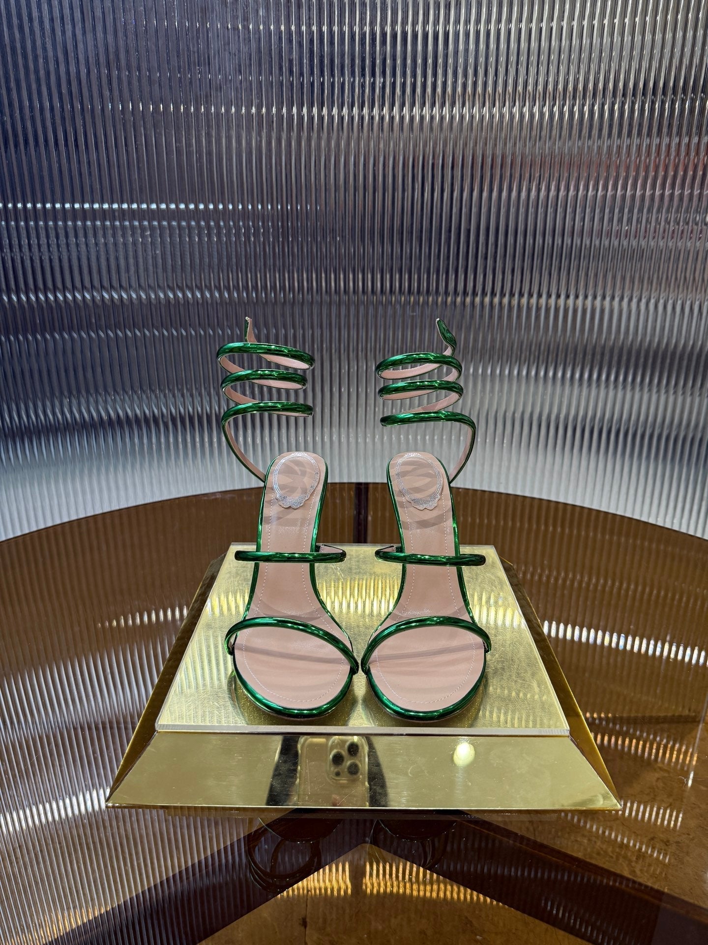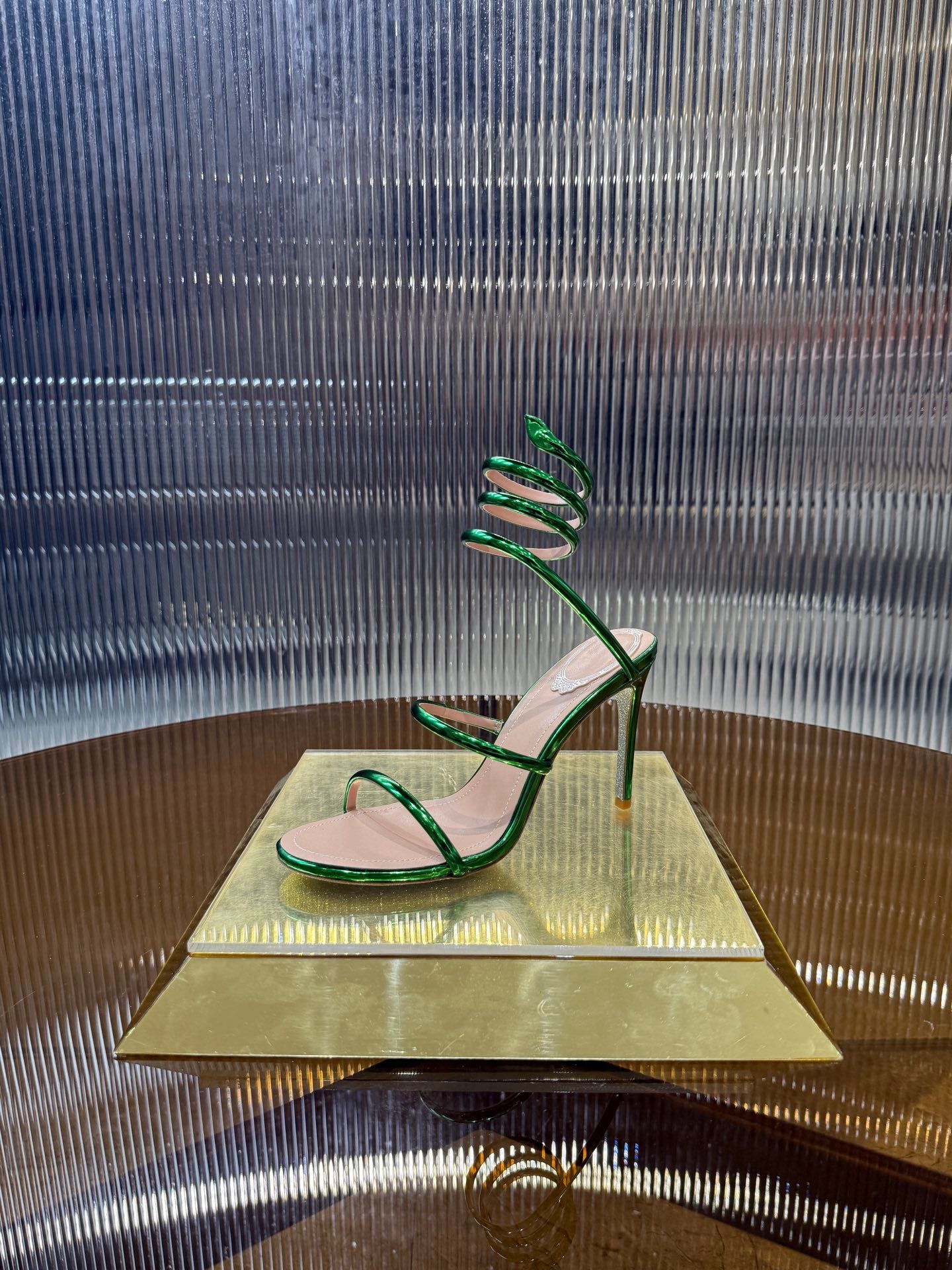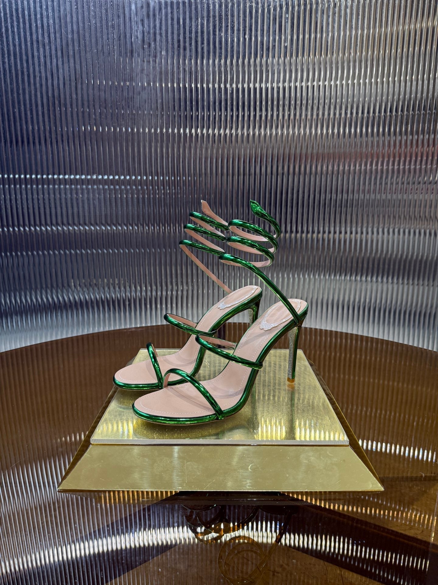 RC 25C Snake-Shaped Sandals 9.5cm Green Sheepskin 310627
