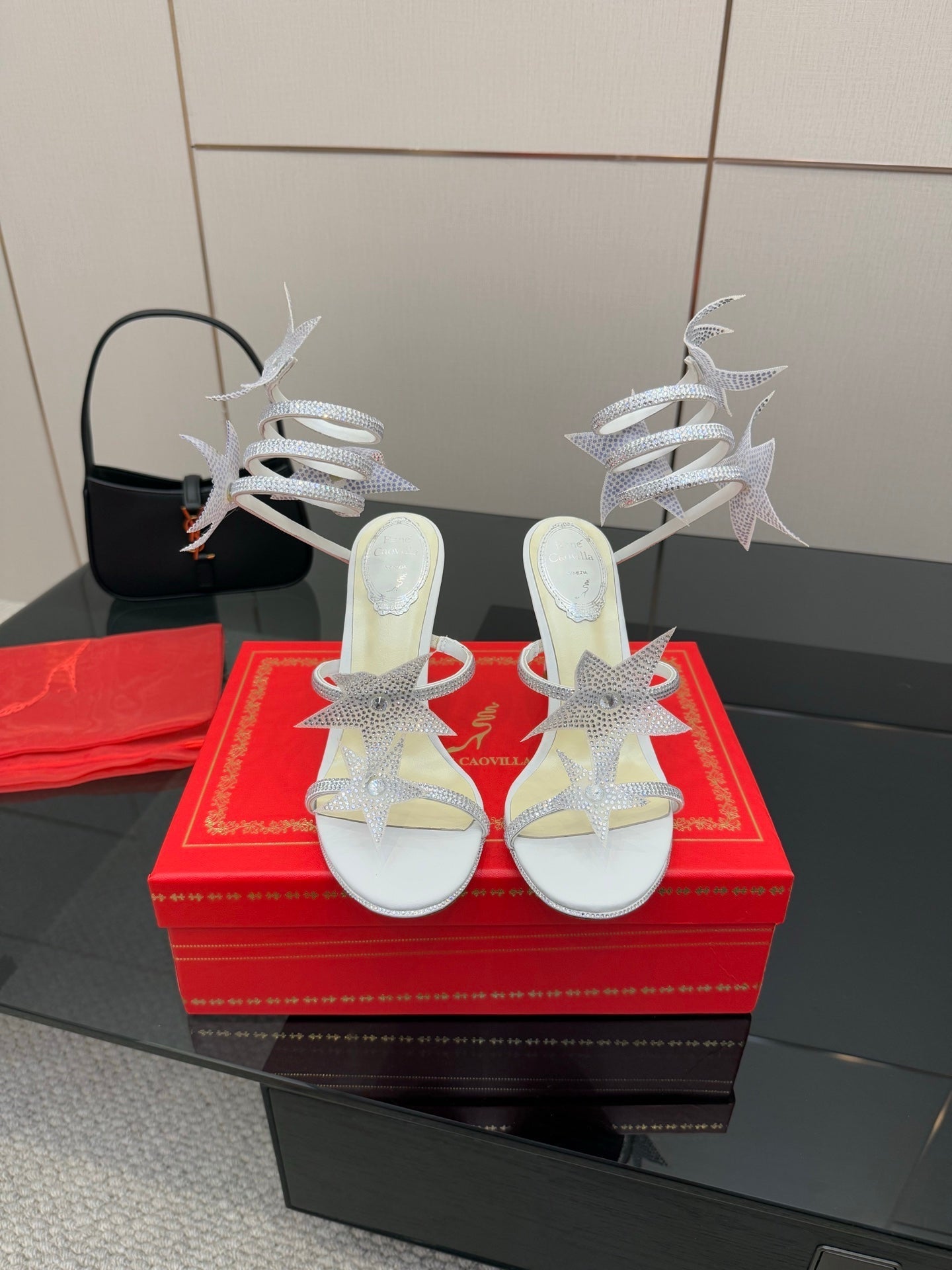 RC Sandals 9.5cm White Rhinestone Silk 302585