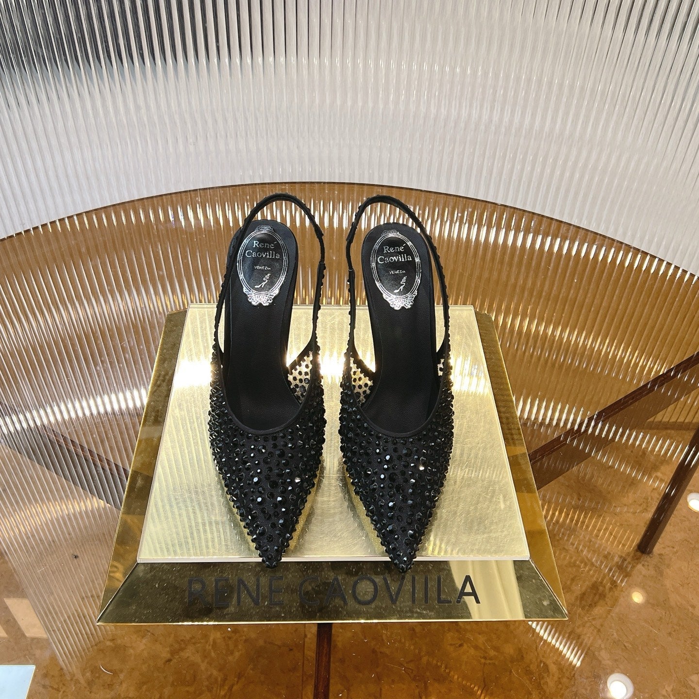RC Slingback Shoes Black Rhinestone Sheepskin 281981