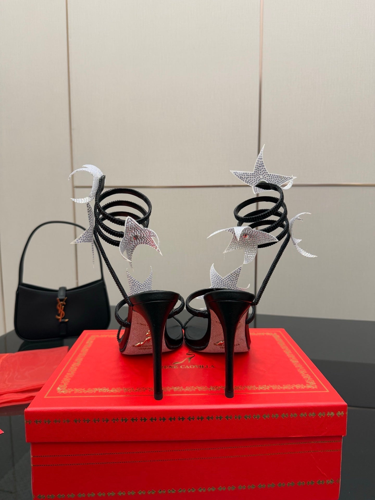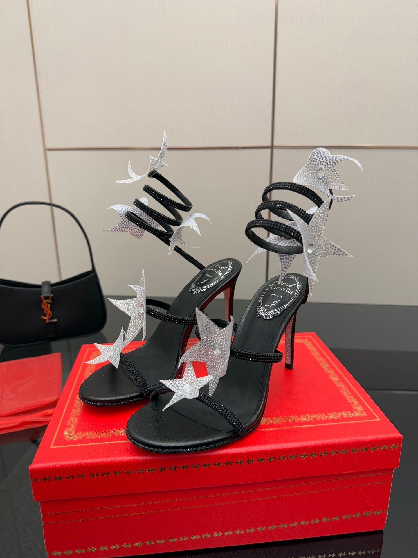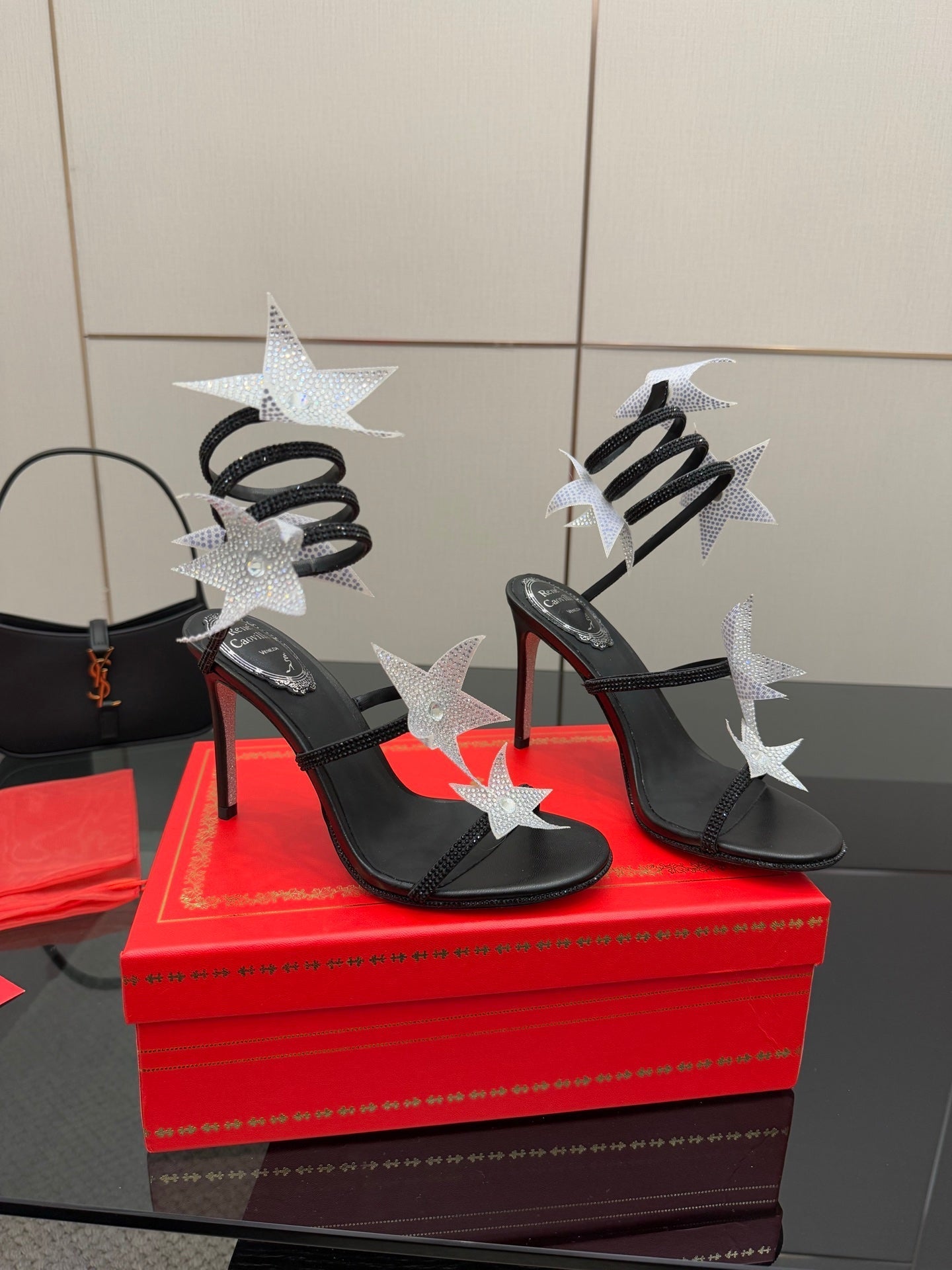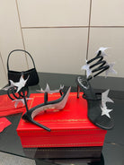 RC Sandals 9.5cm Black Silver Rhinestone Silk 302582