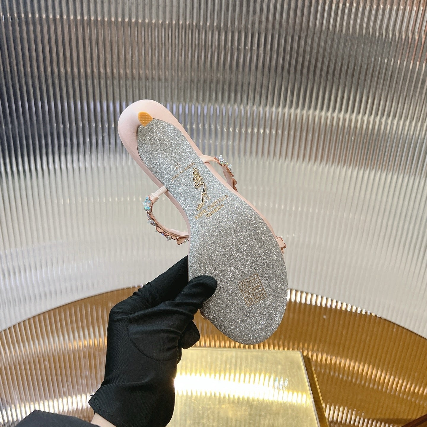 RC 25C Thong Diamond Flat Sandals Pink Silk Rhinestone 275774