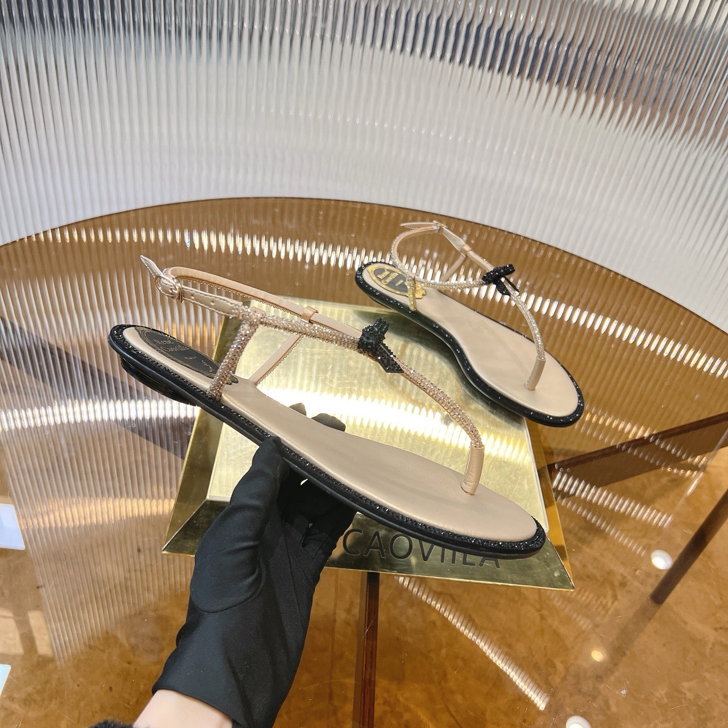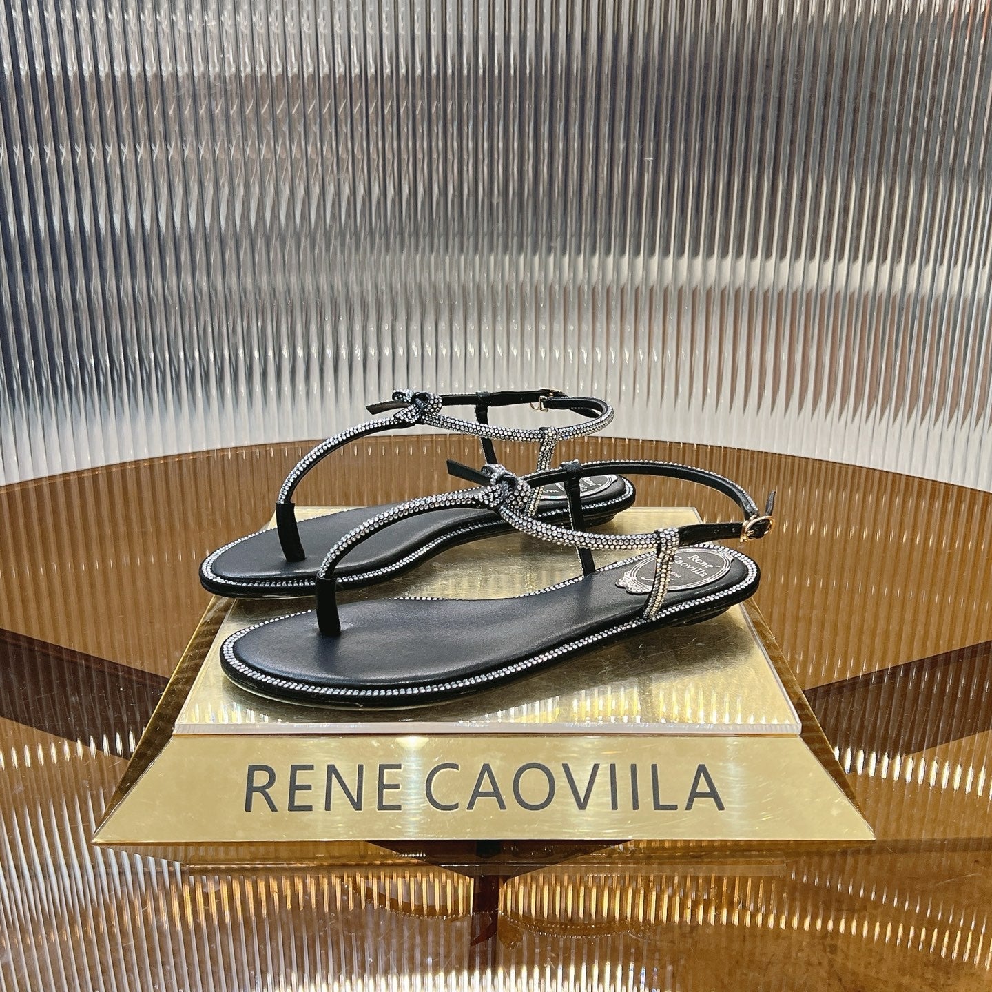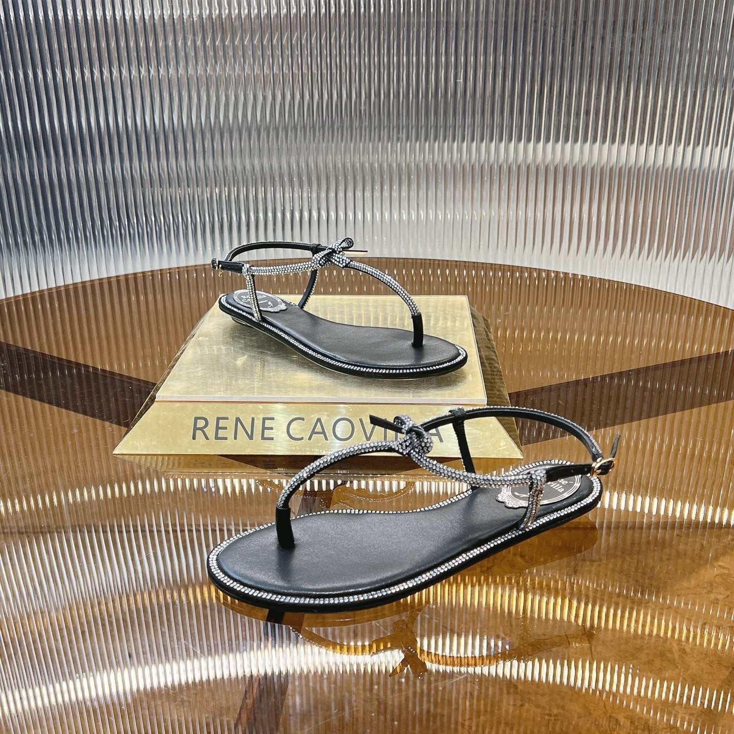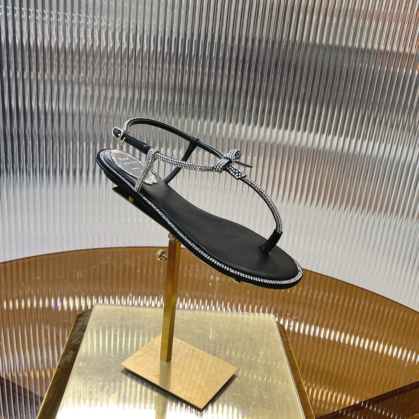 RC 25C Thong Diamond Flat Sandals Black Silk Rhinestone 275773