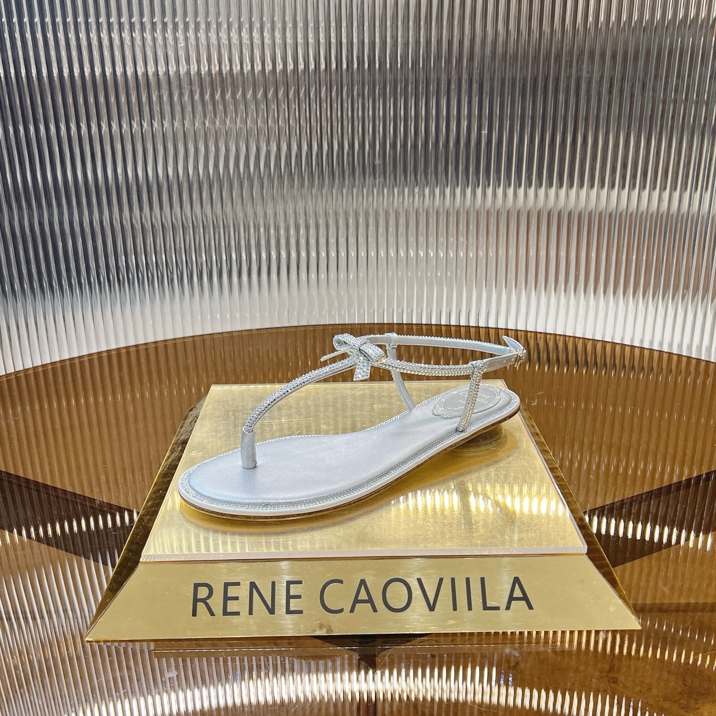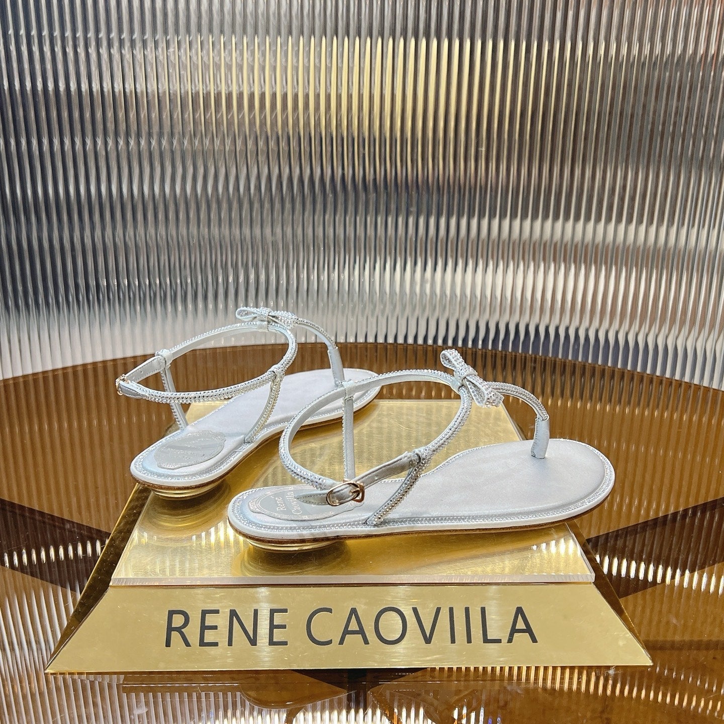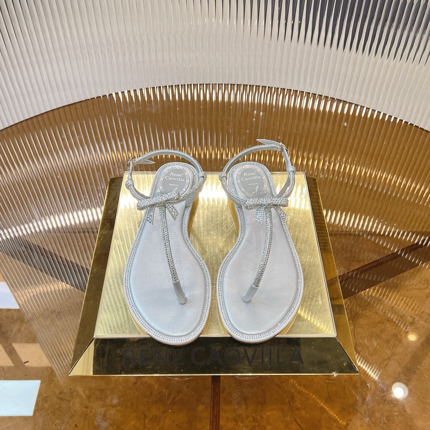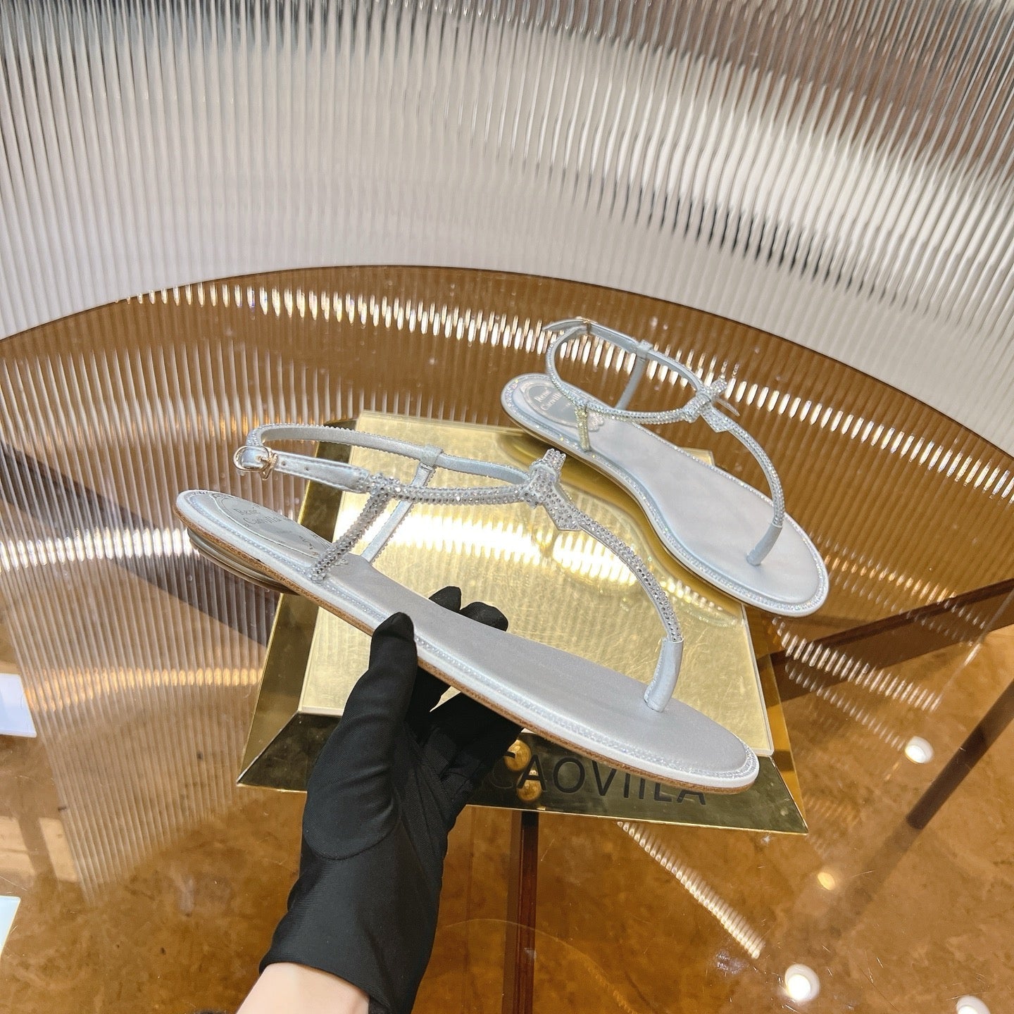 RC 25C Thong Diamond Flat Sandals White Silk Rhinestone 275772