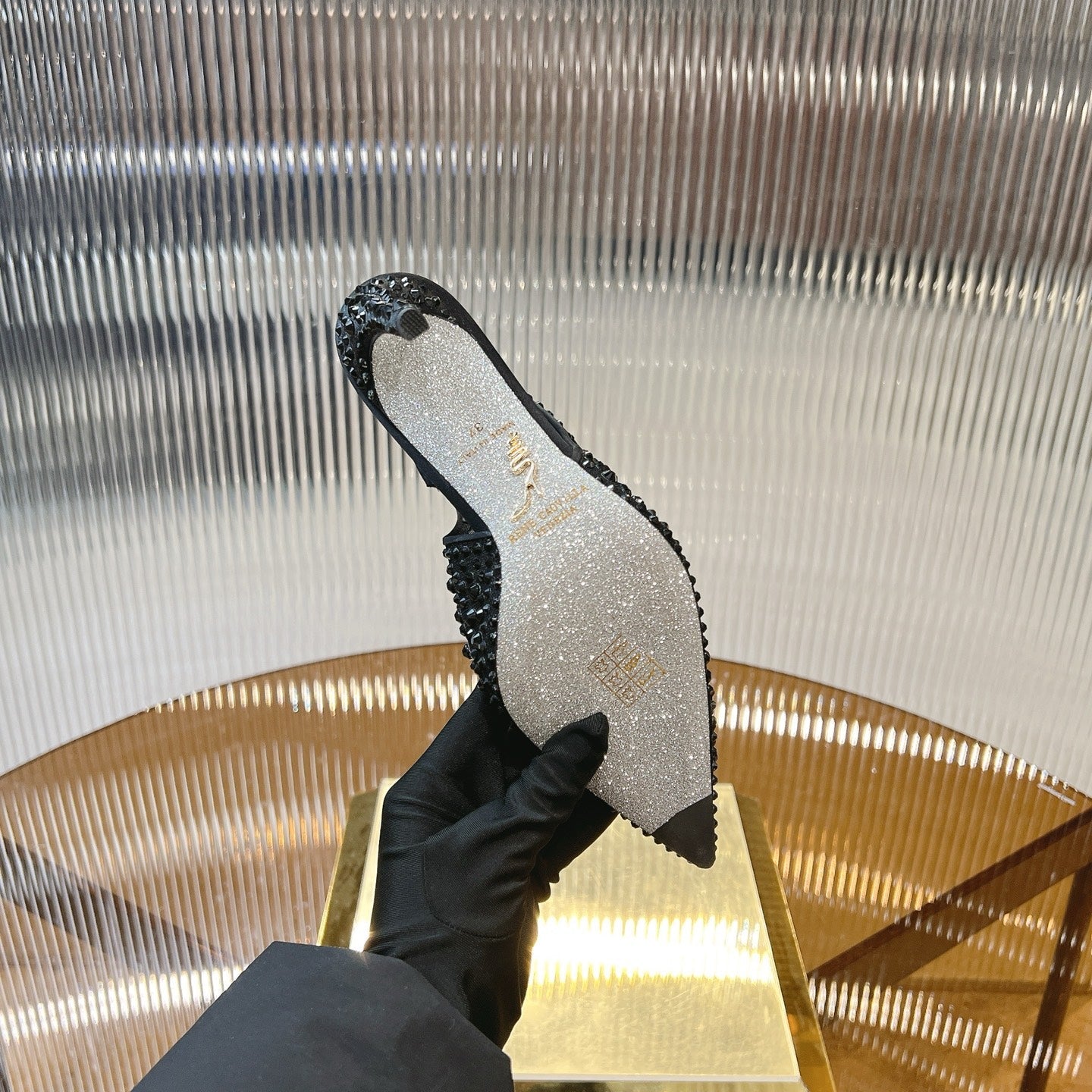 RC Slingback Shoes Black Rhinestone Sheepskin 281981