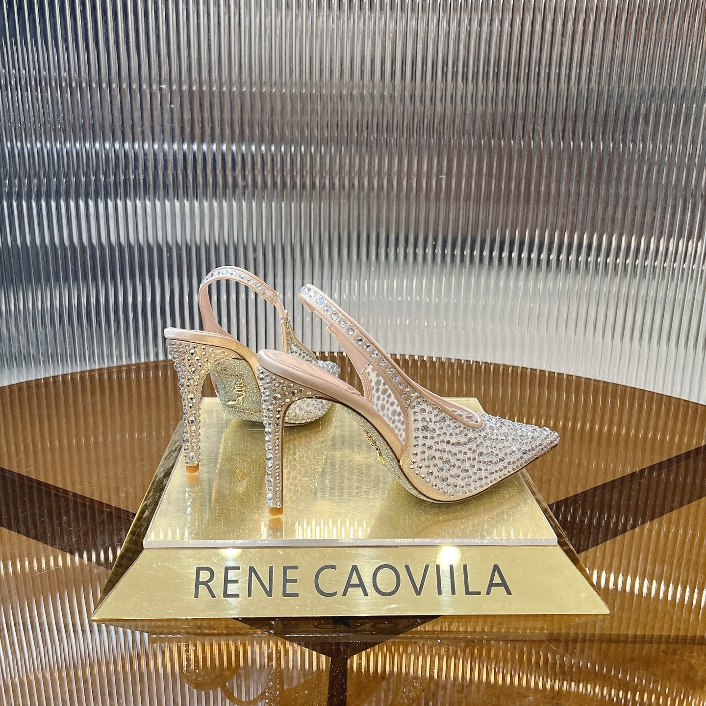RC 25C Stiletto Sandals White Silk Rhinestone 275775